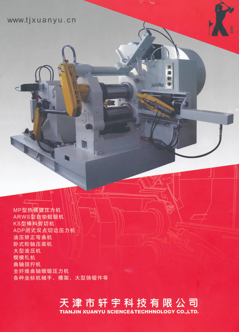 天津市軒宇科技有限公司是在原天津重型機(jī)器集團(tuán)重組后成立的綜合性鍛壓設(shè)備制造公司。長(zhǎng)期從事鍛壓設(shè)備的制造和大修工作,尤其是引進(jìn)德國(guó)EUMUCO產(chǎn)品后,對(duì)熱模鍛壓力機(jī)、閉式雙點(diǎn)切邊壓力機(jī)、棒料剪切機(jī)、輥鍛機(jī)和機(jī)械手、楔橫軋機(jī)及各種液壓機(jī),進(jìn)行生產(chǎn)制造。天津市軒宇科技有限公司擁有高科技人才,具備較高的設(shè)計(jì)水平,有豐富的鍛壓產(chǎn)品設(shè)計(jì)制造經(jīng)驗(yàn)和先進(jìn)的技術(shù),能快速制造出卓越、高效、操作方便、完美的鍛壓設(shè)備!及時(shí)的售后服務(wù)更加受到廣大用戶的好評(píng)!我們的服務(wù)口號(hào)是:顧客的需求就是我們的工作目標(biāo)!