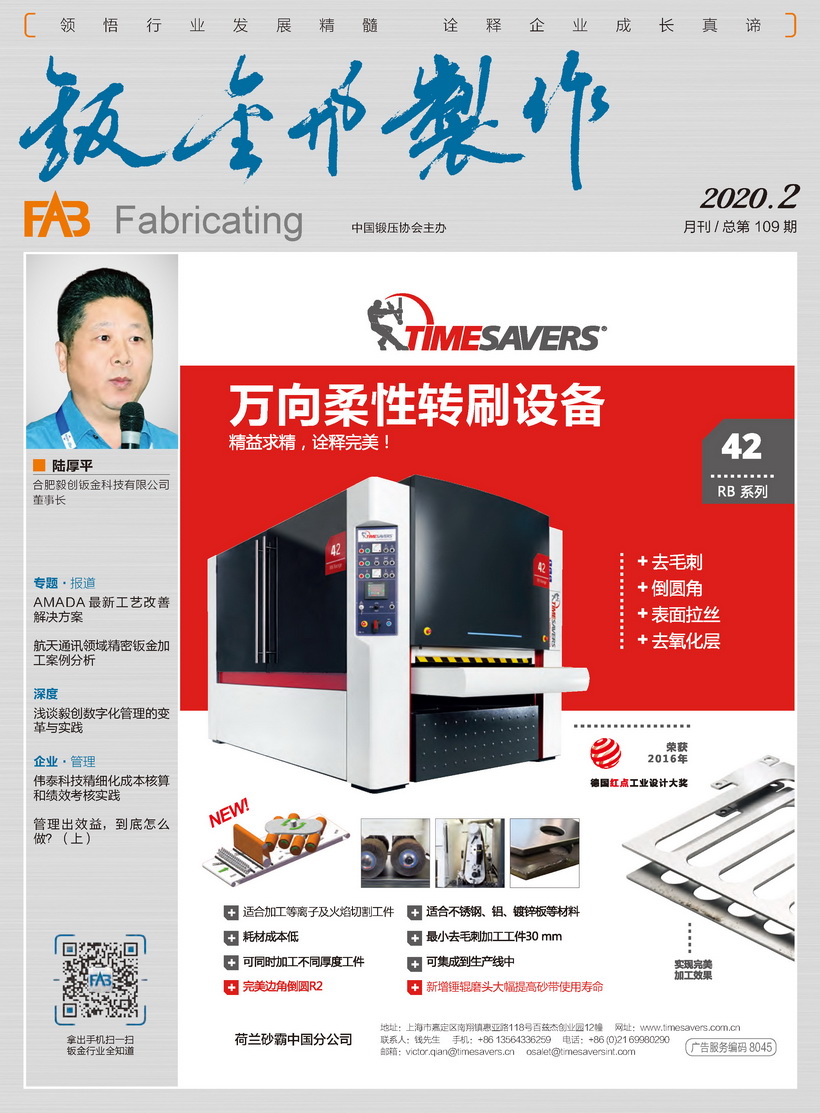 《鈑金與制作》雜志是中國鍛壓協(xié)會主辦的目前國內(nèi)惟一一本面向鈑金制作、管型線材加工行業(yè)的綜合性高端雜志。憑借中國鍛壓協(xié)會多年服務鈑金和管型線材行業(yè)的優(yōu)勢,努力搭建供應商與用戶企業(yè)間的信息平臺,做好政府、高校、科研院所及企業(yè)間溝通的橋梁。