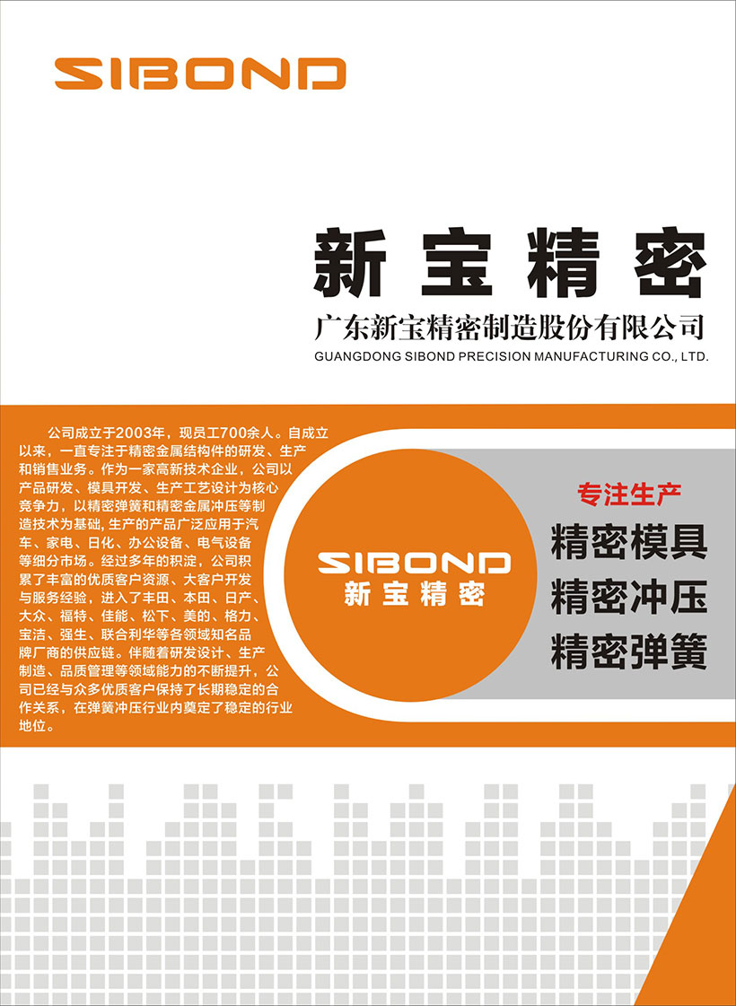 公司成立于2003年,自成立以來,一直專注于精密金屬結(jié)構(gòu)件的研發(fā)、生產(chǎn)和銷售業(yè)務(wù)。作為一家高新技術(shù)企業(yè),公司以產(chǎn)品研發(fā)、模具開發(fā)、生產(chǎn)工藝設(shè)計(jì)為核心競爭力,以精密彈簧和精密金屬?zèng)_壓等制造技術(shù)為基礎(chǔ),生產(chǎn)的產(chǎn)品廣泛應(yīng)用于汽車、家電、日化、辦公設(shè)備、電氣設(shè)備等細(xì)分市場。經(jīng)過多年的積淀,公司積累了豐富的優(yōu)質(zhì)客戶資源、大客戶開發(fā)與服務(wù)經(jīng)驗(yàn),進(jìn)入了豐田、本田、日產(chǎn)、大眾、福特、佳能、松下、美的、格力、寶潔、強(qiáng)生、聯(lián)合利華等各領(lǐng)域知名品牌廠商的供應(yīng)鏈。伴隨著研發(fā)設(shè)計(jì)、生產(chǎn)制造、品質(zhì)管理等領(lǐng)域能力的不斷提升,公司已經(jīng)與眾多優(yōu)質(zhì)客戶保持了長期穩(wěn)定的合作關(guān)系,在彈簧沖壓行業(yè)內(nèi)奠定了穩(wěn)定的行業(yè)地位。