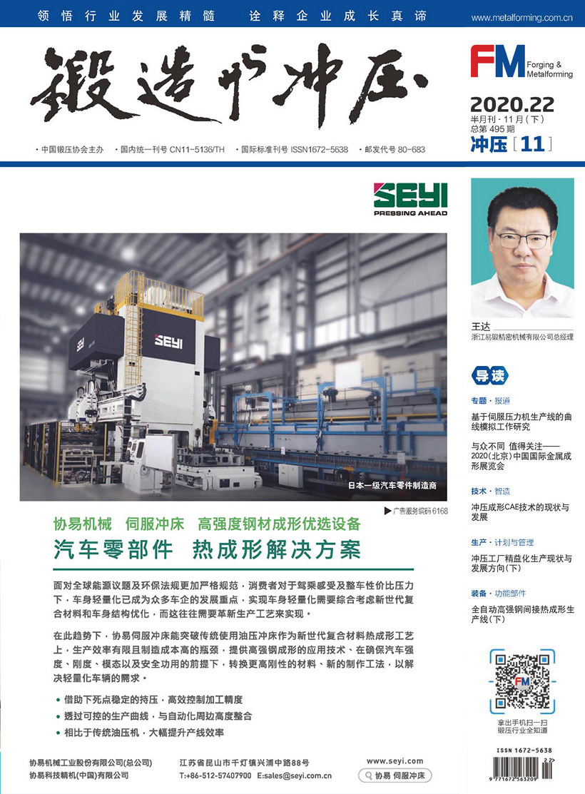 FM《鍛造與沖壓》讀者對象主要涉及:設(shè)備使用者,在企業(yè)中對設(shè)備具有方案制定、選型評估、決策、推薦等重大影響的群體。覆蓋行業(yè):汽車、電子電器、家電、航空、摩托車、基礎(chǔ)件、國防、船舶、鐵道、農(nóng)機、工程機械、石化機械、通用機械、日用品等。
