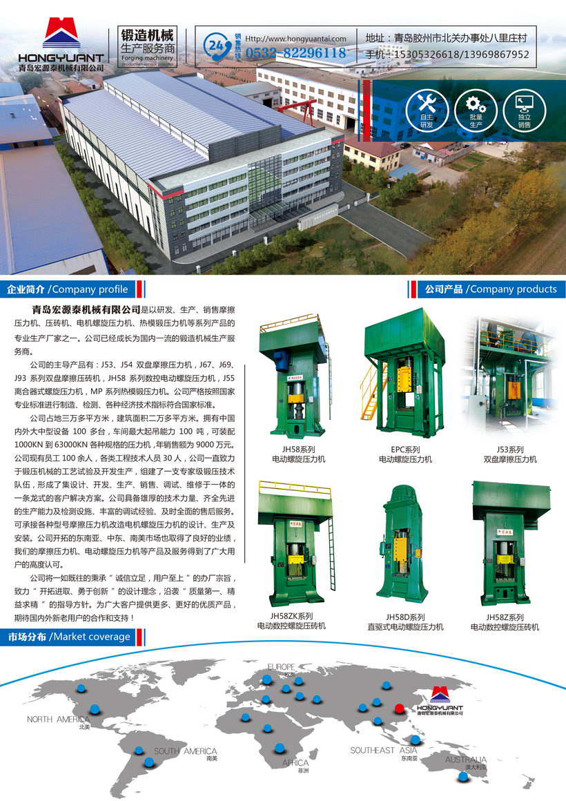 青島宏源泰機(jī)械有限公司是以研發(fā)、生產(chǎn)、銷售摩擦壓力機(jī)、碾環(huán)機(jī)、電液錘等系列產(chǎn)品的專業(yè)生產(chǎn)商。公司已經(jīng)成長為國內(nèi)一流的鍛造機(jī)械生產(chǎn)服務(wù)商。近年來,除在國內(nèi)的市場占有率不斷提高以外,公司開拓的東南亞、中東市場也取得了良好的業(yè)績,我們的摩擦壓力機(jī)、碾環(huán)機(jī)、電液錘類產(chǎn)品及服務(wù)得到了廣大用戶的高度認(rèn)可。