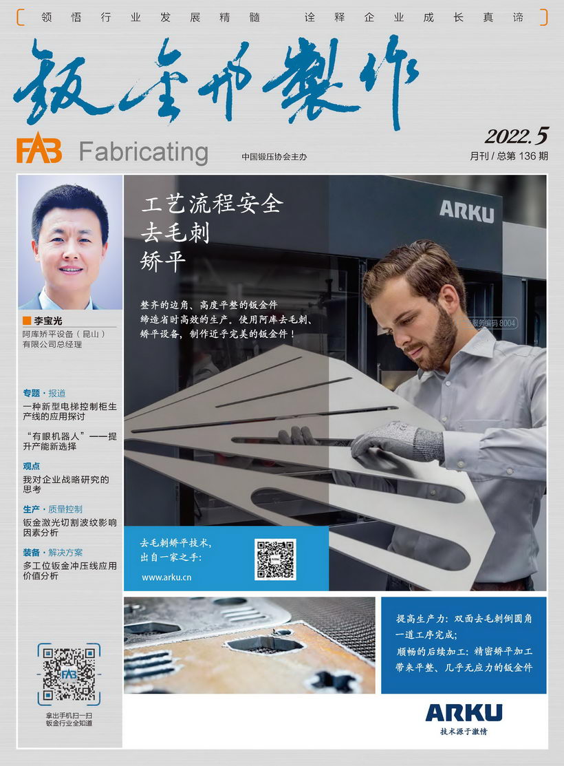 《鈑金與制作》雜志是中國鍛壓協(xié)會(huì)主辦的目前國內(nèi)惟一一本面向鈑金制作、管型線材加工行業(yè)的綜合性高端雜志。憑借中國鍛壓協(xié)會(huì)多年服務(wù)鈑金和管型線材行業(yè)的優(yōu)勢(shì),努力搭建供應(yīng)商與用戶企業(yè)間的信息平臺(tái),做好政府、高校、科研院所及企業(yè)間溝通的橋梁。
