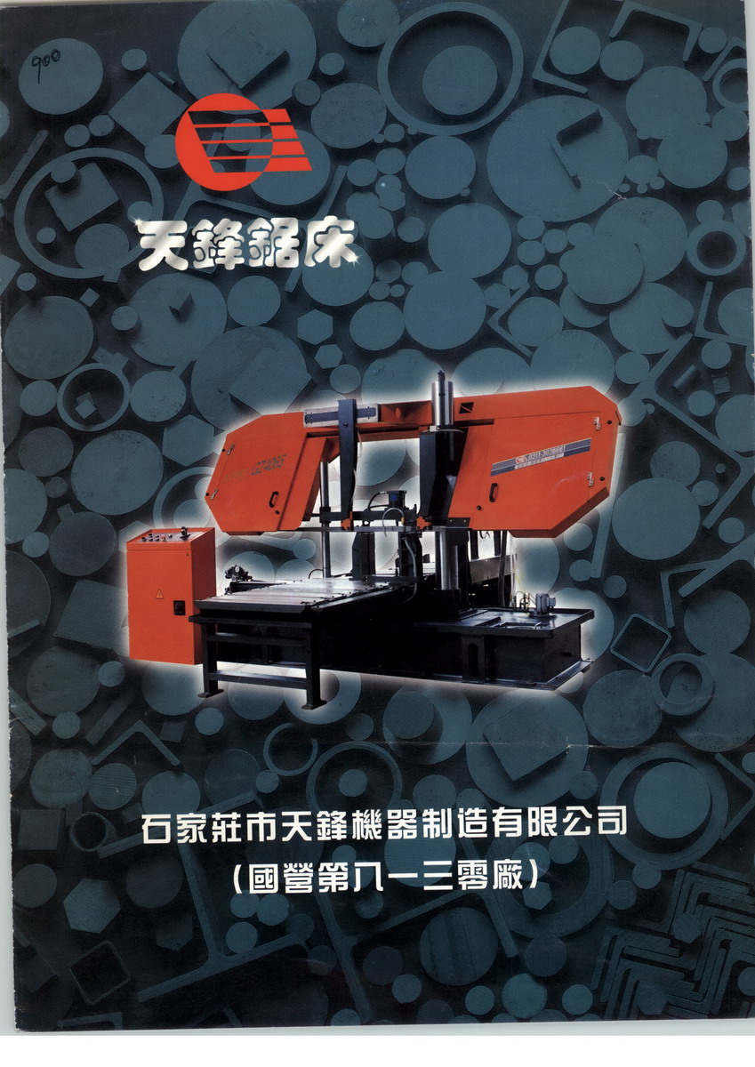 石家莊市天鋒機(jī)器制造有限公司是由國營第八一三零廠改制后成立的股份制企業(yè),是中國機(jī)床工具協(xié)會鋸床分會副理事長單位。 我公司自1990年生產(chǎn)金屬帶鋸床,已有十年的歷史。憑借軍工產(chǎn)品的技術(shù)實(shí)力和現(xiàn)代企業(yè)的快速反應(yīng)機(jī)制,已擁有全自動(dòng)、自動(dòng)、半自動(dòng)三大系列共18個(gè)品種規(guī)格(最小為φ180mm,最大到1000×650mm)的臥式金屬帶鋸床以及GB5232型立式帶鋸床。產(chǎn)品于1993年通過河北省省級技術(shù)鑒定,鑒定結(jié)論為:居國內(nèi)同類產(chǎn)品領(lǐng)先水平,并榮獲河北省技術(shù)發(fā)明金獎(jiǎng)和省科技進(jìn)步三等獎(jiǎng)。市場覆蓋國內(nèi)二十多個(gè)省、市、地區(qū),并出口東南亞。 我公司設(shè)有專門的鋸床售后服務(wù)中心,擁有一直技術(shù)精湛而且敬業(yè)的技術(shù)服務(wù)隊(duì)伍,以“售后服務(wù)也是產(chǎn)品”為宗旨,專門負(fù)責(zé)金屬帶鋸床的售后服務(wù)工作。