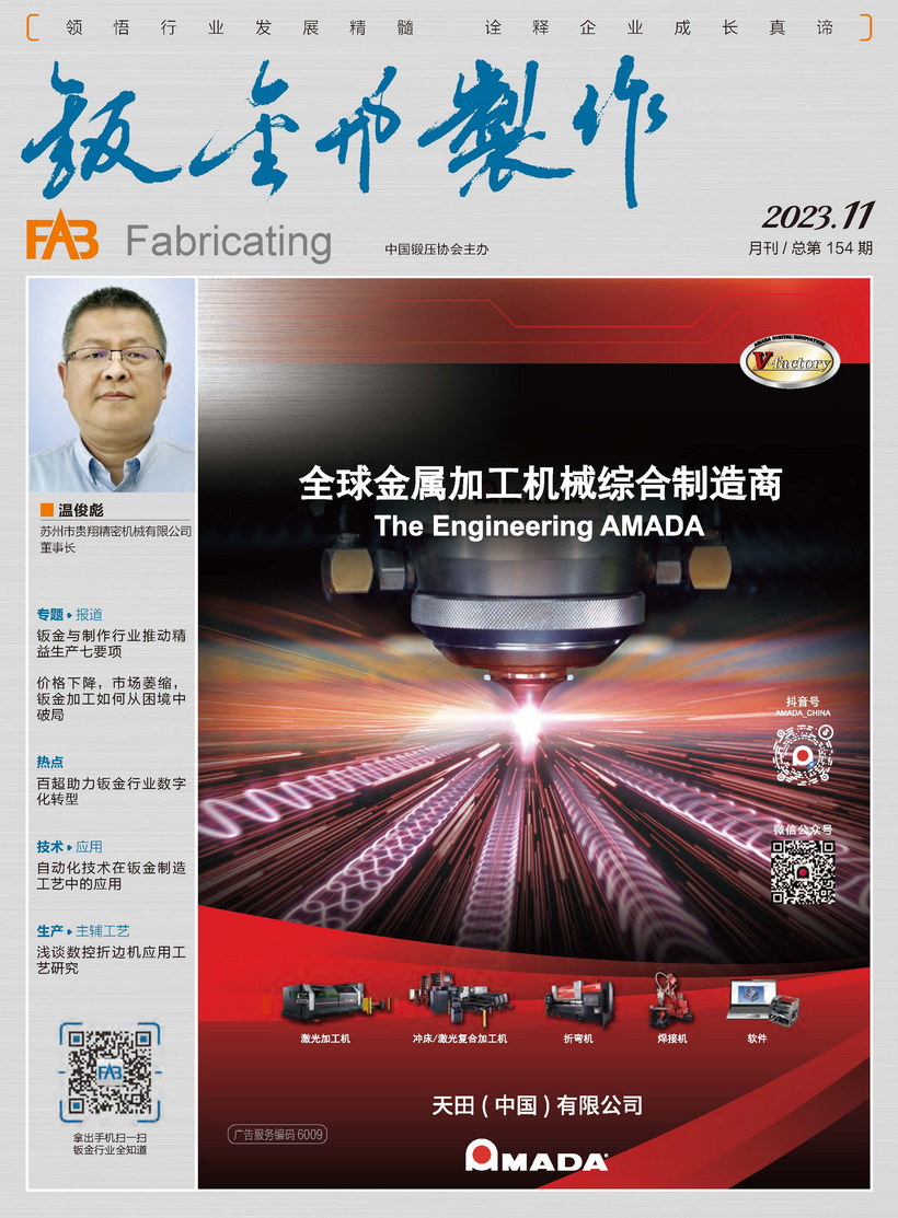 《鈑金與制作》雜志是中國鍛壓協(xié)會主辦的目前國內(nèi)惟一一本面向鈑金制作、管型線材加工行業(yè)的綜合性高端雜志。憑借中國鍛壓協(xié)會多年服務(wù)鈑金和管型線材行業(yè)的優(yōu)勢,努力搭建供應(yīng)商與用戶企業(yè)間的信息平臺,做好政府、高校、科研院所及企業(yè)間溝通的橋梁。