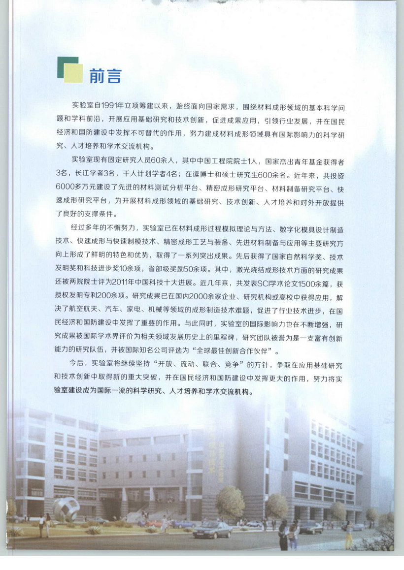 實驗室自1991年立項籌建以來,始終面向國家需求,圍繞材料成形領(lǐng)域的基本科學問題和學科前沿,開展應(yīng)用基礎(chǔ)研究和技術(shù)創(chuàng)新,促進成果應(yīng)用,引領(lǐng)行業(yè)發(fā)展,并在國民經(jīng)濟和國防建設(shè)中發(fā)揮不可替代的作用,努力建成材料成形領(lǐng)域具有國際影響力的科學研究、人才培養(yǎng)和學術(shù)交流機構(gòu)。