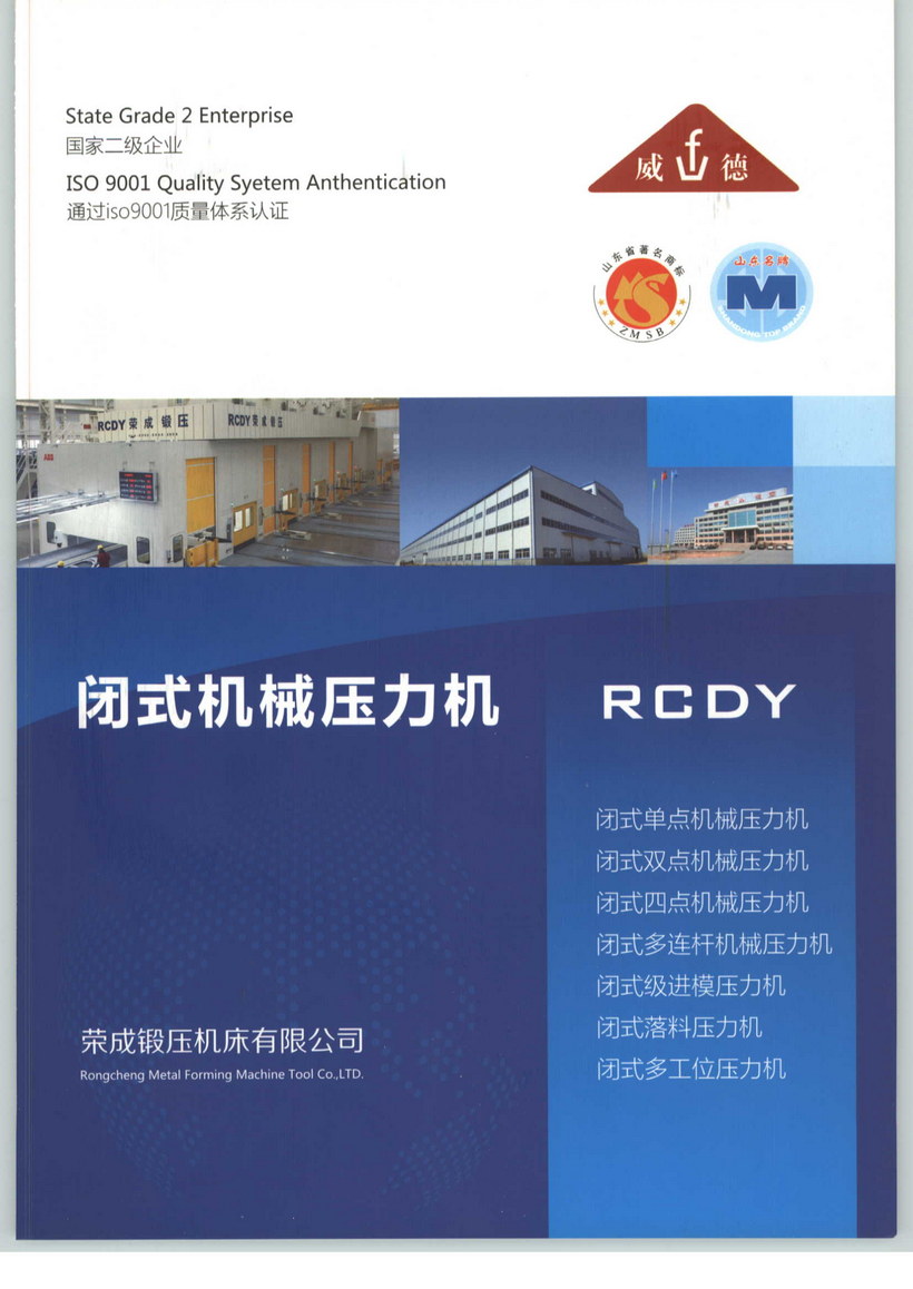 榮成鍛壓機(jī)床有限公司始建于1958年,是生產(chǎn)鍛壓設(shè)備的專業(yè)工廠,國家二級企業(yè)。工廠占地27萬平方米,其中廠房等建筑面積12.8萬平方米;共有員工1000余人,其中工程技術(shù)人員與質(zhì)量專業(yè)人員132人;擁有主要設(shè)備400余臺(套),其中精、大、稀設(shè)備60余臺(套)。公司于2000年即通過了質(zhì)量、職業(yè)健康安全和環(huán)境三大管理體系認(rèn)證。連續(xù)27年被評為山東省“守合同、重信用”企業(yè)。公司先后被省市相關(guān)部門授予省級先進(jìn)企業(yè)、山東省認(rèn)定企業(yè)技術(shù)中心、山東省高新技術(shù)企業(yè)、山東省塑性成型加工機(jī)械工程技術(shù)研究中心、AAA標(biāo)準(zhǔn)化良好行為企業(yè)、省計(jì)量保證確認(rèn)合格企業(yè)、威海市鍛壓機(jī)械工程技術(shù)研究中心、納稅先進(jìn)企業(yè)、五星級職工之家等榮譽(yù)稱號,“威德”商標(biāo)是山東省著名商標(biāo),“威德”牌壓力機(jī)是山東省名牌產(chǎn)品。公司現(xiàn)可生產(chǎn)開式全系列,閉式包括單點(diǎn)、雙點(diǎn)、四點(diǎn)、多連桿、多工位、級進(jìn)模等8大系列300多個(gè)品種的鍛壓設(shè)備,技術(shù)水平都達(dá)到了當(dāng)今國內(nèi)先進(jìn)或領(lǐng)先水平,產(chǎn)品在國內(nèi)外市場享有盛譽(yù)。公司現(xiàn)為國內(nèi)主要鍛壓設(shè)備制造企業(yè)之一。
