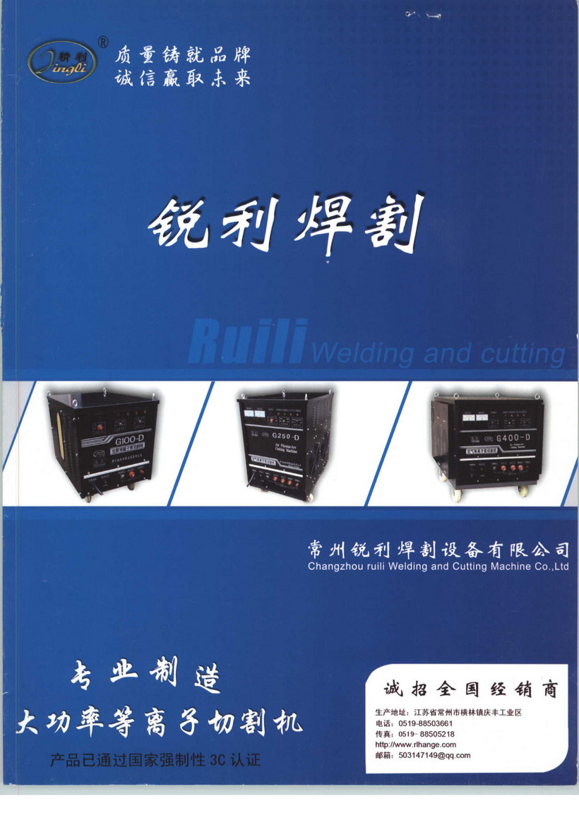 常州銳利焊割設(shè)備有限公司(原常州精藝焊割成套設(shè)備廠),位于滬寧高速和沿江高速交匯處。歷經(jīng)十年的努力與發(fā)展現(xiàn)已成為國(guó)內(nèi)等離子切割機(jī)制造企業(yè)中的佼佼者,其產(chǎn)品質(zhì)量與服務(wù)均得到了廣大用戶的肯定與信賴。公司是具有雄厚的制造能力及完善的檢測(cè)設(shè)備。產(chǎn)品工藝先進(jìn),性能優(yōu)良,結(jié)構(gòu)合理,造型新穎。所有產(chǎn)品通過(guò)國(guó)家權(quán)威機(jī)構(gòu)強(qiáng)制性安全認(rèn)證CCC。
