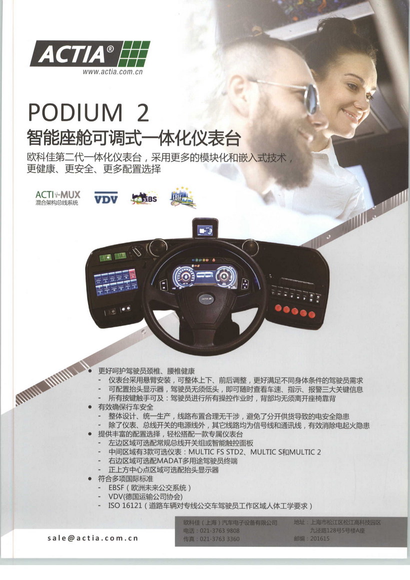 歐科佳(上海)汽車電子設(shè)備有限公司成立于2003年,是法國歐科佳集團(ACTIA Automotive)在中國的獨資子公司,為商用車、乘用車、非道路機械提供車載電子設(shè)備與架構(gòu)系統(tǒng),以及汽車電子檢測與診斷設(shè)備及軟件系統(tǒng),是宇通、廈門金旅、廈門金龍、蘇州金龍、中通、安凱、亞星、申沃、寶馬、奔馳、大眾、沃爾沃、PSA、東風(fēng)、長安、廣汽、華晨、三一重工、徐工、博雷頓、星光農(nóng)機等國內(nèi)外眾多主機廠的首選或標配供應(yīng)商。歐科佳的產(chǎn)品與方案采用國內(nèi)、國際領(lǐng)先的技術(shù),質(zhì)量可靠穩(wěn)定,具有良好的兼容性、擴展性,滿足國內(nèi)、國際相關(guān)標準,海外高端市場占有率高。自成立以來,歐科佳中國一直致力于引介全球前沿技術(shù),推動行業(yè)新發(fā)展。2004年,率先將CAN總線技術(shù)引入中國客車市場并推廣。2009年、2012年,舉辦第一屆和第二屆汽車故障診斷技術(shù)及發(fā)展國際研討會。2013年,在國內(nèi)推廣應(yīng)用DMT車載智能信息系統(tǒng)解決方案并率先開始在行業(yè)介紹EBSF Project歐洲未來公交系統(tǒng)。DMT車載智能信息系統(tǒng)解決方案全面整合了CAN總線、故障診斷、維保專家系統(tǒng)、車聯(lián)網(wǎng)技術(shù)、車隊管理系統(tǒng)。2017年,開始在客車行業(yè)介紹歐洲ITxPT標準。2019年,發(fā)布歐科佳新一代智能網(wǎng)聯(lián)架構(gòu)ITxPT,舉辦第三屆汽車故障診斷技術(shù)及發(fā)展國際研討會。2021年,發(fā)布歐科佳客車電子信息及控制系統(tǒng)集成方案。2023年,發(fā)布歐科佳車輛網(wǎng)絡(luò)安全解決方案。