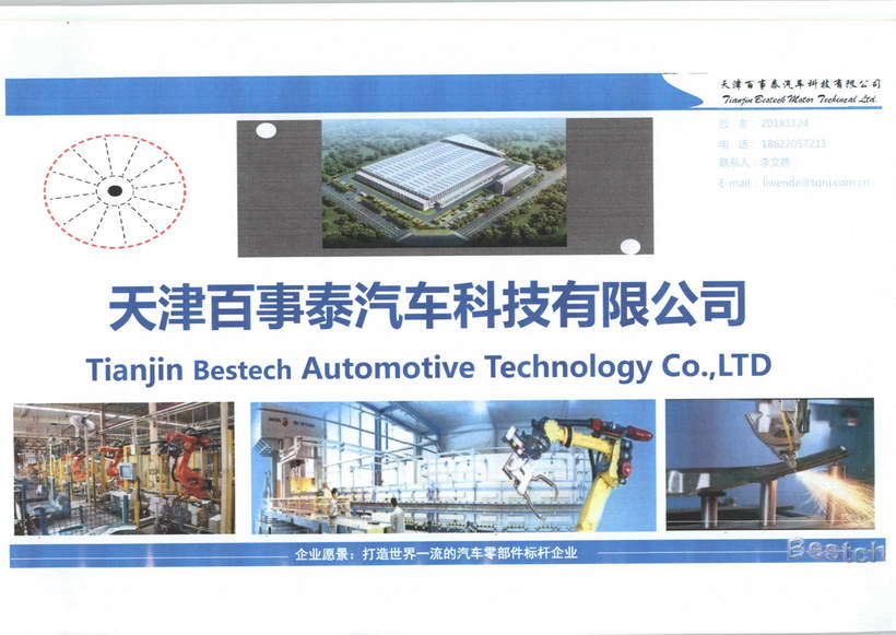 天津百事泰汽車科技有限公司,交通便利,位于天津空港經(jīng)濟(jì)區(qū),距離天津機(jī)場3公里,緊鄰京津塘高速,注冊資金5000萬元;占地面積5800平方米,一期總設(shè)備投資3500萬元,主營業(yè)務(wù)為熱沖壓零件生產(chǎn)、產(chǎn)品研發(fā)。