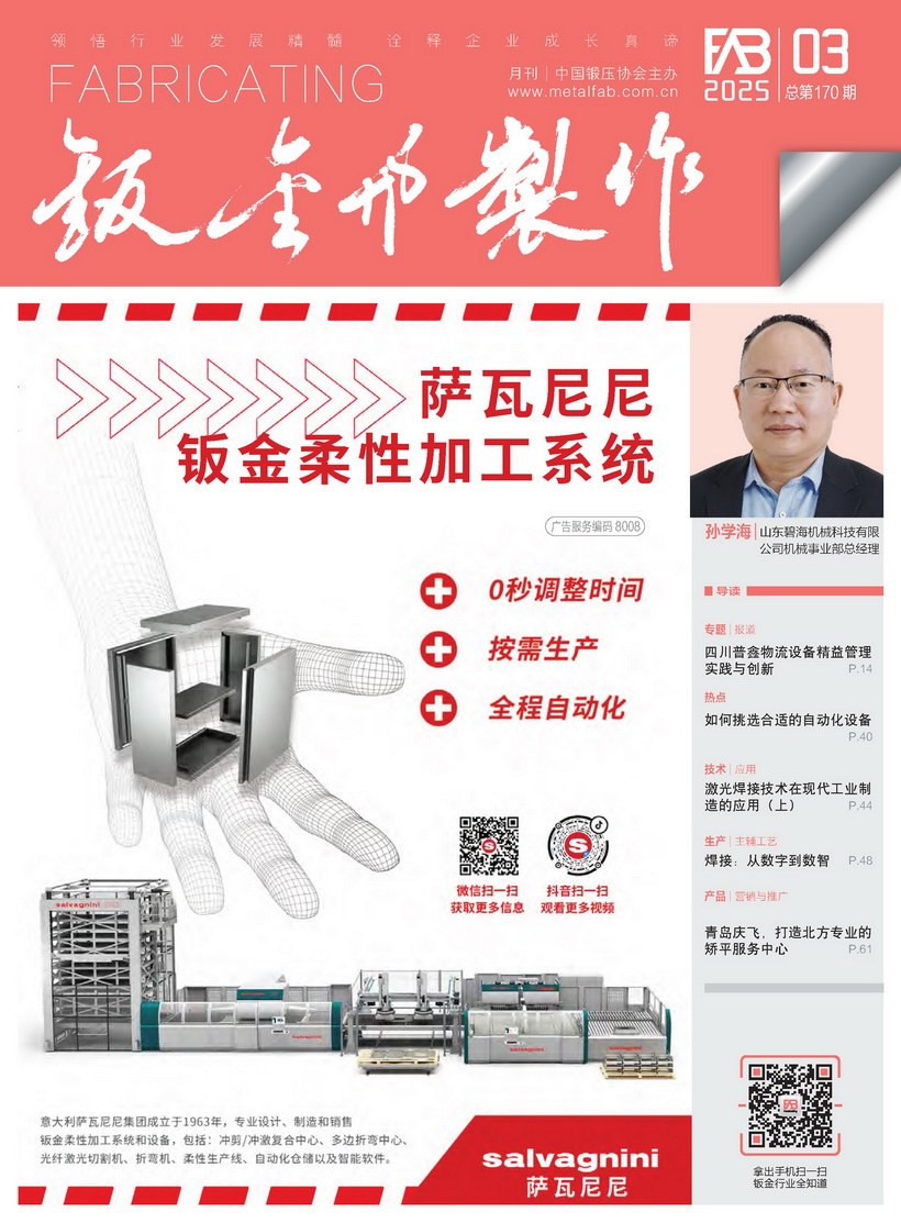 《鈑金與制作》雜志是中國鍛壓協(xié)會(huì)主辦的目前國內(nèi)惟一一本面向鈑金制作、管型線材加工行業(yè)的綜合性高端雜志。憑借中國鍛壓協(xié)會(huì)多年服務(wù)鈑金和管型線材行業(yè)的優(yōu)勢(shì),努力搭建供應(yīng)商與用戶企業(yè)間的信息平臺(tái),做好政府、高校、科研院所及企業(yè)間溝通的橋梁。