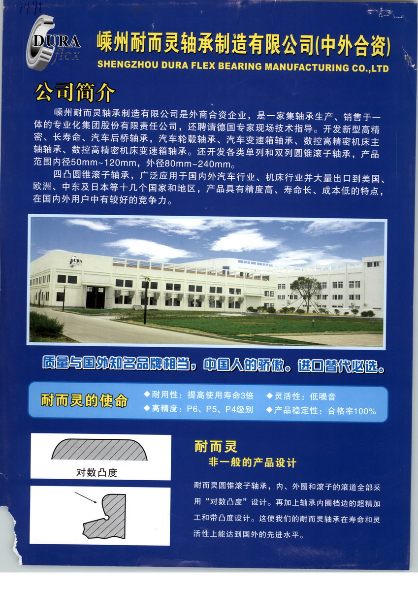 嵊州耐而靈軸承制造有限公司坐落在美麗富饒的沿海開放城市浙江省嵊州市,東距寧波大港50公里,西鄰杭州125公里。本公司屬外商合資企業(yè),是一家集軸承生產、銷售于一體的專業(yè)化集團股份有限責任公司。公司與洛陽軸承研究所成產聯(lián)合研發(fā)中心并聘請德國專家現(xiàn)場技術指導,開發(fā)新型高精密、長壽命汽車后橋軸承、汽車輪轂軸承、汽車變速箱軸承、數(shù)控高精密機床主軸軸承、數(shù)控高精密機床變速箱軸承,填補了國內四凸圓錐滾子軸承的空白。