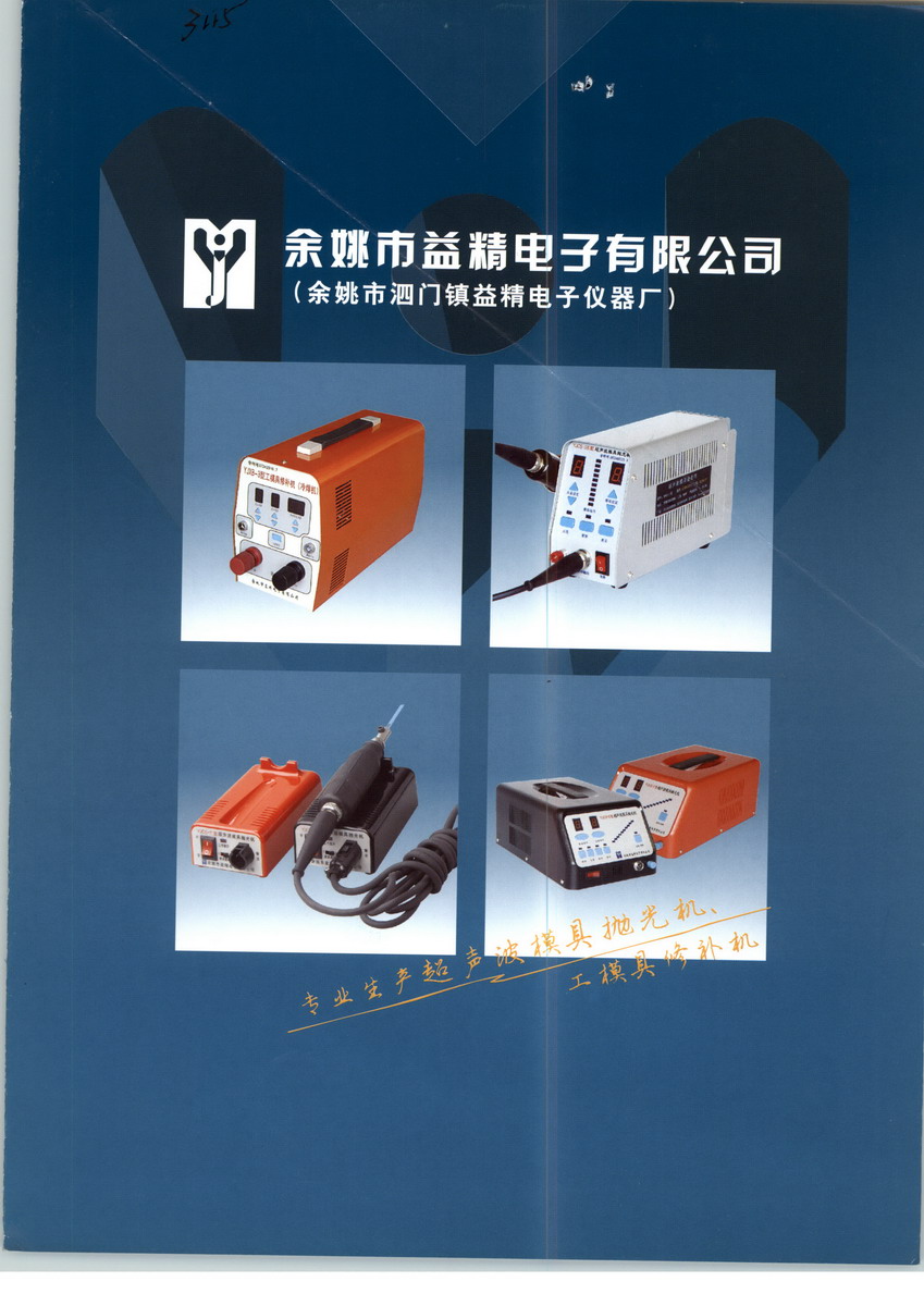 余姚市益精電子有限公司(前身余姚市泗門鎮(zhèn)益精電子儀器廠)成立于1991,已有二十年生產(chǎn)超聲波模具拋光機、電子打光機、工模具修補機、冷焊機、鑄造缺陷修補機等設(shè)備的專業(yè)經(jīng)驗。 “產(chǎn)品更精,服務(wù)更好”是我公司的一貫宗旨。多年來,我們一直堅持穩(wěn)扎穩(wěn)打、誠信經(jīng)營,贏得了越來越多的新老客戶的支持?,F(xiàn)在的益精電子,擁有多項發(fā)明專利和實用新型專利,已累計獨立研發(fā)YJCS超聲波模具拋光機/YJXB工模具修補機/YJHB高能精密焊補機等三大系列十余款產(chǎn)品。在模具精拋光、精密工件/模具修補、大型鑄造件/機床部件特種修復(fù)等領(lǐng)域,都樹立了良好的口碑,獲得廣大用戶的認(rèn)可。