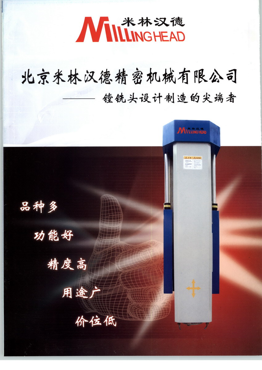 北京米林漢德精密機械有限公司主要經(jīng)營:鏜銑頭;立式銑頭;臥式銑頭;側(cè)用銑頭;伸長銑頭;90度銑頭;專機設(shè)計;等產(chǎn)品。公司尊崇“踏實、拼搏、責任”的企業(yè)精神,并以誠信、共贏、開創(chuàng)經(jīng)營理念,創(chuàng)造良好的企業(yè)環(huán)境,以全新的管理模式,完善的技術(shù),周到的服務(wù),卓越的品質(zhì)為生存根本,我們始終堅持用戶至上 用心服務(wù)于客戶,堅持用自己的服務(wù)去打動客戶。