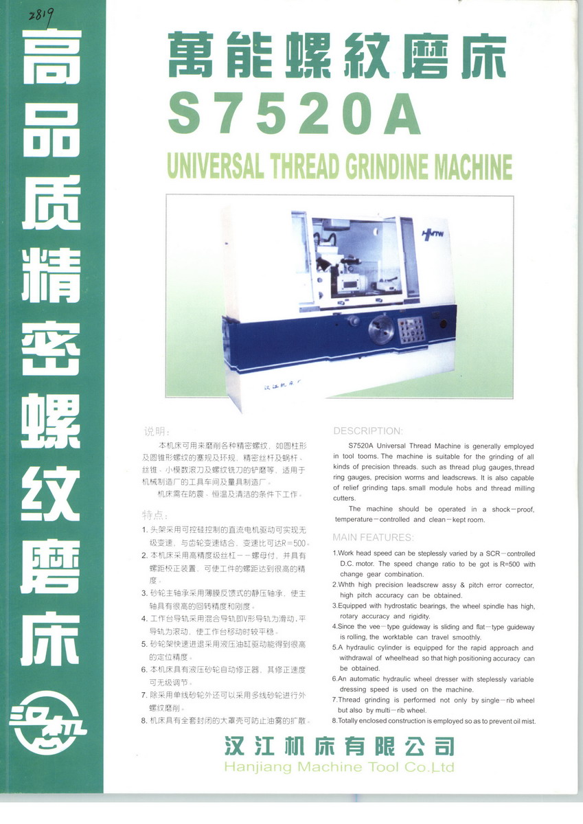 公司秉承“誠信為本、精益求精”的企業(yè)精神,堅(jiān)持“國內(nèi)領(lǐng)先、國際一流”的發(fā)展戰(zhàn)略,經(jīng)過近50年的歷程,發(fā)展到目前主要以生產(chǎn)高精度數(shù)控螺紋磨床系列、螺桿磨床、蝸桿磨床、絲錐磨床、塞規(guī)磨床、曲軸磨床、花鍵磨床、萬能外圓磨床、平面磨床等精密數(shù)控機(jī)床裝備,變壓器硅鋼片縱剪線、數(shù)控可轉(zhuǎn)位刀片周邊磨、光伏行業(yè)硅片多線切割機(jī)等專機(jī)設(shè)備和精密測量儀器,各類功能部件(滾珠絲杠副、直線導(dǎo)軌副、滾動(dòng)導(dǎo)軌塊、滾動(dòng)花鍵副、螺桿轉(zhuǎn)子副、齒輪齒條副、精密工作臺(tái))等精密零部件產(chǎn)品的高新技術(shù)企業(yè),擁有從加工工藝、加工設(shè)備、計(jì)量檢測、標(biāo)準(zhǔn)制定的螺紋制造全產(chǎn)業(yè)鏈核心技術(shù)?!皾h機(jī)牌”螺紋磨床、滾珠絲杠榮獲“陜西省名牌產(chǎn)品”稱號(hào),國內(nèi)市場占有率第一,用戶領(lǐng)域廣泛,涵蓋機(jī)床工具、航空航天、鐵路、軍工、礦山冶金、石油化工、汽車、通用機(jī)械及IT等行業(yè)。公司在上海浦東和江蘇昆山建有浦東分廠、昆山分廠,同時(shí),在北京、上海、西安設(shè)有銷售公司,在全國各地設(shè)立了代理機(jī)構(gòu),產(chǎn)品遠(yuǎn)銷歐美、俄羅斯、東南亞、中東及拉美地區(qū)。