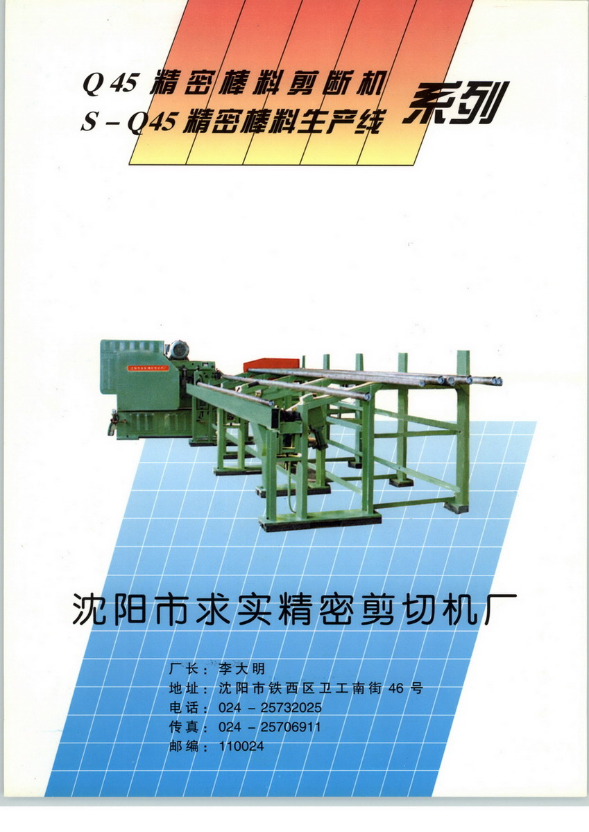 沈陽市求實(shí)精密剪切機(jī)廠,是專門從事精密棒料剪斷機(jī)的研制,開發(fā)和生產(chǎn)的企業(yè)。企業(yè)技術(shù)力量雄厚,集中了國內(nèi)著名的精密棒料剪斷機(jī)設(shè)計(jì)、制造專家。我廠研制的精密棒料生產(chǎn)線,不僅擋住了進(jìn)口,填補(bǔ)了國內(nèi)空白,還被中國鍛壓協(xié)會(huì)列入1996年8月至2001年9月大事件中。