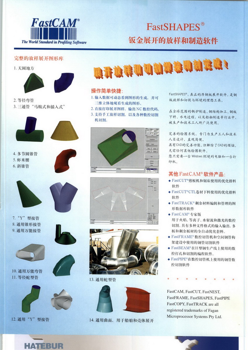 FastCAM是一款全自動(dòng)共邊連割套料軟件(當(dāng)前版本V 5.10)該軟件主要針對(duì)數(shù)控切割機(jī),包括火焰、等離子、激光和水刀等數(shù)控切割機(jī),用于任意形狀零件的繪圖、編程、套料、校驗(yàn)和數(shù)控切割。通過(guò)FastCAM可以提高鋼材套料率,有效節(jié)省鋼材; 提高編程、套料和切割工作效率,有效提高切割生產(chǎn)效率。FastCAM全自動(dòng)共邊套料功能是在自動(dòng)套料過(guò)程中實(shí)現(xiàn)矩形零件和非矩形零件,即任意零件不同邊長(zhǎng)的自動(dòng)共邊,無(wú)需手工編輯,自動(dòng)處理不同零件的共邊和連割,為防止和避免熱切割變形,自動(dòng)處理切割方向和穿孔點(diǎn)的位置,借用切割過(guò)的邊緣,直接預(yù)熱切割,避免穿孔。共邊套料切割的主要用途:一是避免和減少零件間的切割間距,提高鋼材利用率,二是共邊切割使每個(gè)矩形零件少切一條或二條邊,有效減少切割行程,提高切割效率,三是共邊切割借用切割過(guò)的邊緣預(yù)熱,避免穿孔,減少預(yù)熱時(shí)間,提高切割效率,同時(shí)有效節(jié)省割嘴和耗材。