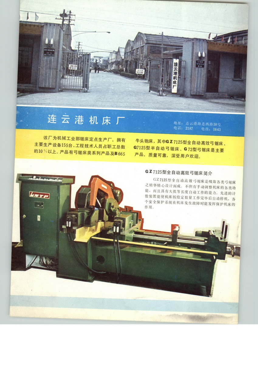 連云港機(jī)床廠有限公司(原連云港機(jī)床廠)位于黃海之濱、新亞歐大陸橋東橋頭堡、美麗的港口城市-連云港市。連云港機(jī)床廠有限公司創(chuàng)建于1967年2月。2.1萬(wàn)平方米的占地面積,1.45萬(wàn)平方米的廠房建筑,150余臺(tái)套高精度的生產(chǎn)設(shè)備,使其擁有年產(chǎn)3000余臺(tái)套各類金屬鋸床的生產(chǎn)能力。優(yōu)美的環(huán)境,便捷的交通,特殊的地理位置,加上優(yōu)秀的加工,使得連云港機(jī)床廠有限公司充滿朝氣。1994年,我廠與日本天田株式會(huì)社合資興建了天田連云港機(jī)械有限公司,注冊(cè)資金620萬(wàn)美元,主要產(chǎn)品為AMADAΦ250系列帶鋸床、雙金屬帶鋸條,產(chǎn)品質(zhì)量擠身世界一流。經(jīng)過三十余年的努力與奮斗,公司已發(fā)展成為中國(guó)規(guī)模最大的鋸削裝備的生產(chǎn)基地,2002年名列中國(guó)機(jī)床工具行業(yè)企業(yè)效績(jī)?cè)u(píng)比綜合得分第一。主要產(chǎn)品有Φ160--500mm全系列臥式弓鋸床及Φ250--1300mm全系列帶鋸床。“連機(jī)”弓鋸床、帶鋸床被授于江蘇省名牌產(chǎn)品稱號(hào),連續(xù)多年被國(guó)家質(zhì)量技術(shù)監(jiān)督局抽查為合格產(chǎn)品。公司近四十余年的生產(chǎn)經(jīng)驗(yàn),加上完美的ISO9000質(zhì)量管理體系,必將使廣大顧客的需求得到最大的滿足,并與廣大顧客共創(chuàng)美好的明天 。