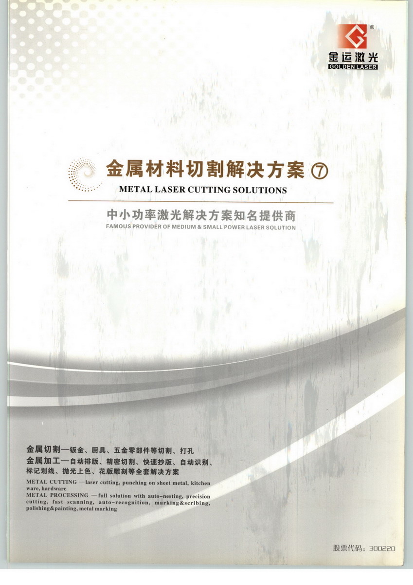 武漢金運激光股份有限公司,是專業(yè)集研發(fā)、生產和銷售于一體的中小功率激光切割加工解決方案提供商,2005年成立2011年上市,企業(yè)股票代碼:300220。