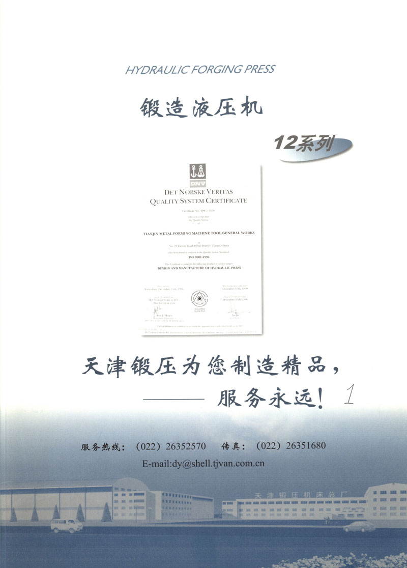 天津市鍛壓機床總廠是我國起步最早的企業(yè),現(xiàn)有固定資產(chǎn)2.4億元各類專業(yè)技術(shù)人員480人,是機械部大型骨干企業(yè)。自我廠自行設(shè)計國內(nèi)第一臺液壓機,開創(chuàng)了我國中小型液壓機生產(chǎn)歷史以來,目前擁有26個系列,300余品種,產(chǎn)品從80KN至5000KN,以形成年產(chǎn)1200臺各類液壓機的生產(chǎn)能力,居國內(nèi)同行業(yè)之首。1983年YT32-315四柱液壓機獲國家銀牌,1990年YT32-630/1030雙動力拉伸液壓機一舉榮獲同行業(yè)唯一的國家金獎另有部優(yōu)產(chǎn)品3項,市優(yōu)產(chǎn)品5項。產(chǎn)品廣泛適用于汽車制造、粉末冶金、金屬冷擠、輕工家電、化工機戒、航空航天、模具磨料、機戒制造等行業(yè),被國家指定為替代進口產(chǎn)品,行銷全國,產(chǎn)品出口到日本、荷蘭、東南亞等20多個地區(qū)和國家、市場占有率居全國同行業(yè)第一。