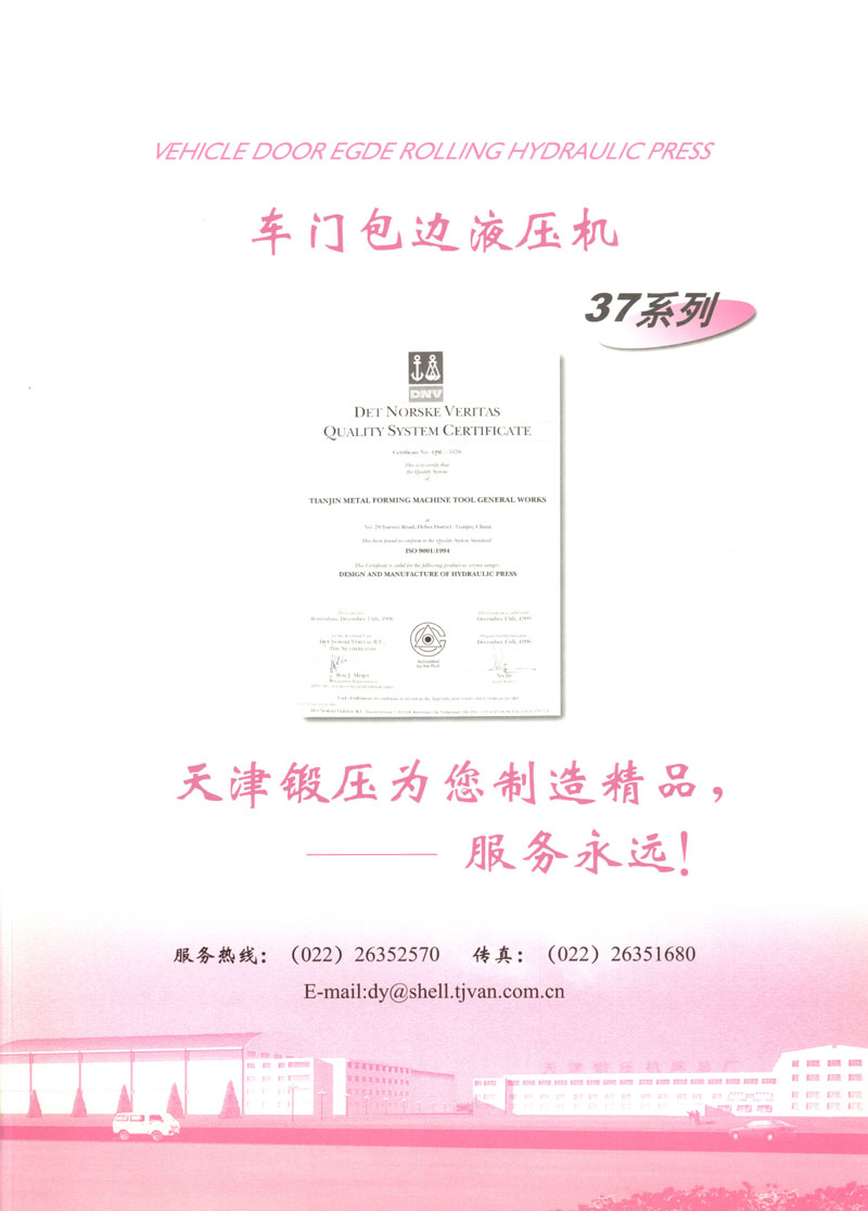 天津市鍛壓機床總廠是我國起步最早的企業(yè),現(xiàn)有固定資產(chǎn)2.4億元各類專業(yè)技術(shù)人員480人,是機械部大型骨干企業(yè)。自我廠自行設計國內(nèi)第一臺液壓機,開創(chuàng)了我國中小型液壓機生產(chǎn)歷史以來,目前擁有26個系列,300余品種,產(chǎn)品從80KN至5000KN,以形成年產(chǎn)1200臺各類液壓機的生產(chǎn)能力,居國內(nèi)同行業(yè)之首。1983年YT32-315四柱液壓機獲國家銀牌,1990年YT32-630/1030雙動力拉伸液壓機一舉榮獲同行業(yè)唯一的國家金獎另有部優(yōu)產(chǎn)品3項,市優(yōu)產(chǎn)品5項。產(chǎn)品廣泛適用于汽車制造、粉末冶金、金屬冷擠、輕工家電、化工機戒、航空航天、模具磨料、機戒制造等行業(yè),被國家指定為替代進口產(chǎn)品,行銷全國,產(chǎn)品出口到日本、荷蘭、東南亞等20多個地區(qū)和國家、市場占有率居全國同行業(yè)第一。