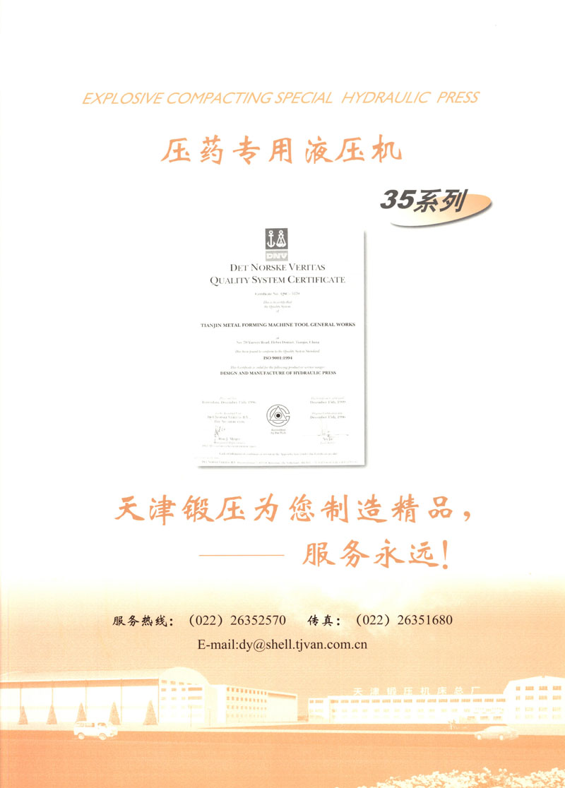 天津市鍛壓機(jī)床總廠是我國(guó)起步最早的企業(yè),現(xiàn)有固定資產(chǎn)2.4億元各類專業(yè)技術(shù)人員480人,是機(jī)械部大型骨干企業(yè)。自我廠自行設(shè)計(jì)國(guó)內(nèi)第一臺(tái)液壓機(jī),開創(chuàng)了我國(guó)中小型液壓機(jī)生產(chǎn)歷史以來,目前擁有26個(gè)系列,300余品種,產(chǎn)品從80KN至5000KN,以形成年產(chǎn)1200臺(tái)各類液壓機(jī)的生產(chǎn)能力,居國(guó)內(nèi)同行業(yè)之首。1983年YT32-315四柱液壓機(jī)獲國(guó)家銀牌,1990年YT32-630/1030雙動(dòng)力拉伸液壓機(jī)一舉榮獲同行業(yè)唯一的國(guó)家金獎(jiǎng)另有部?jī)?yōu)產(chǎn)品3項(xiàng),市優(yōu)產(chǎn)品5項(xiàng)。產(chǎn)品廣泛適用于汽車制造、粉末冶金、金屬冷擠、輕工家電、化工機(jī)戒、航空航天、模具磨料、機(jī)戒制造等行業(yè),被國(guó)家指定為替代進(jìn)口產(chǎn)品,行銷全國(guó),產(chǎn)品出口到日本、荷蘭、東南亞等20多個(gè)地區(qū)和國(guó)家、市場(chǎng)占有率居全國(guó)同行業(yè)第一。