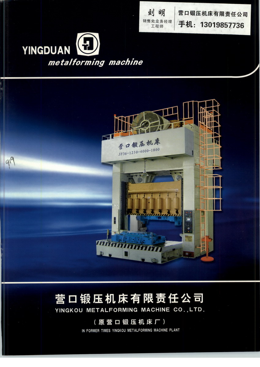 營(yíng)口鍛壓機(jī)床有限責(zé)任公司(原營(yíng)口鍛壓機(jī)床廠),位于渤海之濱、大遼河之畔,始建于1949年,是原國家機(jī)械部重點(diǎn)生產(chǎn)壓力機(jī)專業(yè)廠,有著66年生產(chǎn)機(jī)械壓力機(jī)的歷史,注冊(cè)資金5500萬元。具備自動(dòng)化、智能化生產(chǎn),是省內(nèi)唯一生產(chǎn)金屬成型母機(jī)的專業(yè)廠,現(xiàn)為中國機(jī)床工具工業(yè)協(xié)會(huì)鍛壓機(jī)械會(huì)常務(wù)理事單位,現(xiàn)有員工400余名。