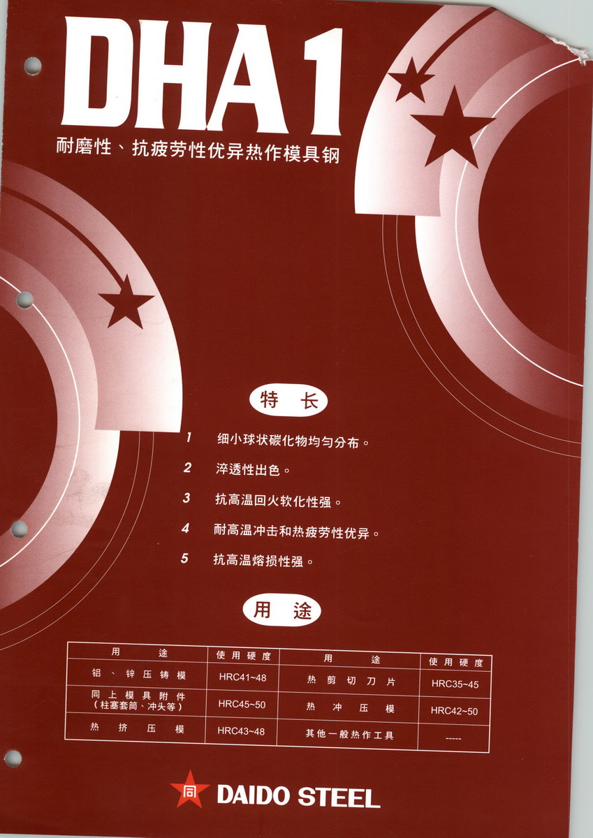 大同特殊鋼株式會社創(chuàng)業(yè)于1916年,于1950年設立大同特殊鋼株式會社,總部在日本名古屋,現(xiàn)員工總人數(shù)10414名,基本資金37,172,464,289日元。發(fā)行股票總股數(shù)434,487,693日元。日本大同DAIDODPR吸波材料!/中國區(qū)代理鴻楷科技(香港)有限公司 事業(yè)內容:高合金制品、電氣、電子部品用材料、磁材制品(OA・FA用馬達、汽車用表盤・雷達感應器、計測機械用部品等)經(jīng)營理念:為21世紀的現(xiàn)代社會做出貢獻的有創(chuàng)造性和個性的企業(yè)作為目標,善用人才、不斷地鉆研技術和對未知領域的挑戰(zhàn)。對地球環(huán)境的保護考慮的同時,并以國際社會上良好企業(yè)市民為宗旨,在21世紀希望能受到國際社會的好評,滿足社會對大同企業(yè)的需要而不斷地創(chuàng)造是大同特殊鋼全體員工的共同目標。而[人]、[技術]和[前沿精神]是實現(xiàn)這個目標的基本。 發(fā)掘人才,活用人才尊重他人,讓公司員工感到在公司工作的價值,將員工的幸福和社會的發(fā)展作為和諧經(jīng)營的目標。對技術的精益求精。本公司會不斷的[創(chuàng)造],為社會做出貢獻作為經(jīng)營的起點,不斷地追求最高[技術]是我們的使命。挑戰(zhàn)未知領域。不單只是挑戰(zhàn)開發(fā)新的業(yè)務和新產品,在日常工作中實現(xiàn)每個人擁有超強的勇氣和滿腔熱情去對待新事情的[前沿精神]。可以說每個員工用強烈的意志和負責的心態(tài)去付之行動是實現(xiàn)這個理念的原動力。