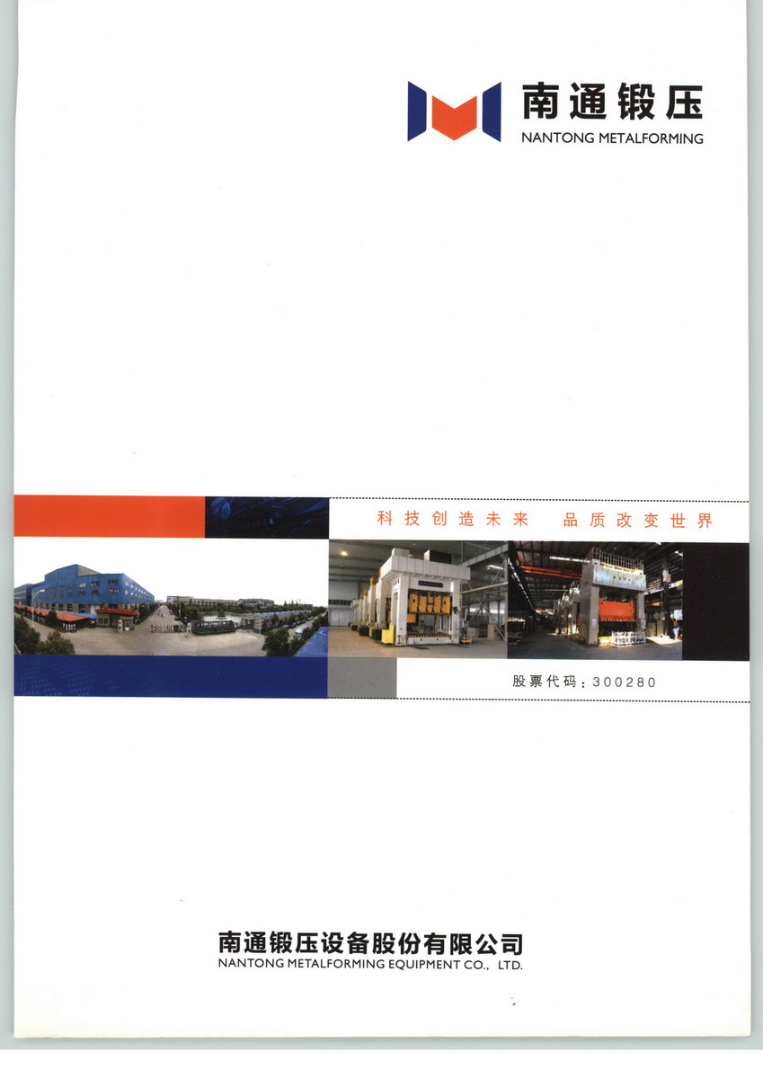 南通鍛壓設備股份有限公司是專業(yè)從事鍛壓設備的研發(fā)、生產(chǎn)和銷售,并為客戶提供個性化、多樣化、系統(tǒng)化金屬及非金屬成形解決方案的高新技術企業(yè)。公司系國內金屬成形機床行業(yè)重點骨干企業(yè)、全國優(yōu)秀民營科技企業(yè)、國家火炬計劃重點承擔單位、江蘇省創(chuàng)新型企業(yè)和高成長型中小企業(yè)、江蘇省用戶滿意服務單位。2011年12月29日,公司股票在深圳證券交易所創(chuàng)業(yè)板掛牌上市(股票簡稱:南通鍛壓,股票代碼:300280)。公司主要產(chǎn)品為各類液壓機、機械壓力機等數(shù)十個規(guī)格、上百個品種的鍛壓設備,擁有數(shù)十項授權專利、軟件著作權,其中多個產(chǎn)品被科技部列入國家火炬計劃項目、國家科技重大專項、國家重點新產(chǎn)品計劃、江蘇省重大科技成果轉化專項資金項目、江蘇省高新技術產(chǎn)品等,大型高性能框架精密成形液壓機通過省經(jīng)信委新產(chǎn)品新技術鑒定。公司產(chǎn)品廣泛用于汽車、航空航天、核電、軍工、能源、化工、船舶等諸多行業(yè)和領域,暢銷國內三十多個省、市、區(qū),并出口多個國家和地區(qū),具有廣泛、穩(wěn)定的客戶基礎,享有較高的市場知名度和美譽度。“慶華”商標被授予“江蘇省著名商標”稱號,“慶華”牌液壓機被認定為江蘇名牌產(chǎn)品。