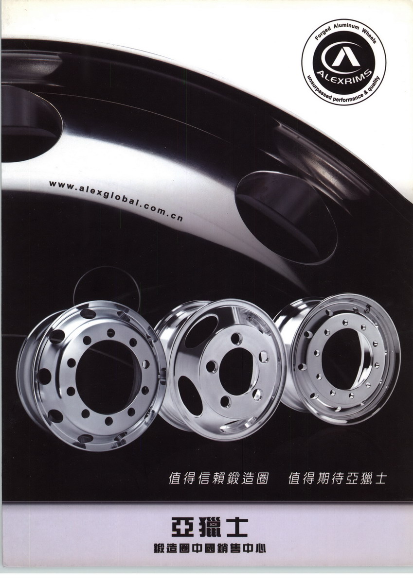 亞獵士鍛造鋁合金車圈是在全球能源日益緊縮的時代背景下誕生的跨時代產(chǎn)品。 公司累積了近二十年的鋁合金經(jīng)驗,并依照全球最嚴苛的實驗標準測試,結(jié)合 兩岸生產(chǎn)基地與研發(fā)實力,讓亞獵士車圈擁有超輕、啟動敏捷、散熱快、又能 延長輪胎壽命的優(yōu)勢、開發(fā)出適合亞洲特殊氣候及運輸條件的鍛造鋁合金車圈。 亞獵士汽、卡車輪圈銷售范圍覆蓋遍及全球,在亞洲、歐洲皆設(shè)有銷售服務(wù)中 心,提供廣大客戶最完善的服務(wù)品質(zhì),以其大尺寸、輕量化、高強度又安全美 觀的特性,讓使用者在競爭激烈的市場中,可以掌握最實質(zhì)的經(jīng)濟效益。 亞獵士是: 唯一在臺灣擁有鍛造鋁合金材料熔煉廠的車圈企業(yè); 唯一在中國大陸投資設(shè)廠生產(chǎn)鍛造鋁圈的外資廠商; 唯一為大陸特殊運輸條件設(shè)計材料配方和模具開發(fā)鍛造鋁圈品牌。