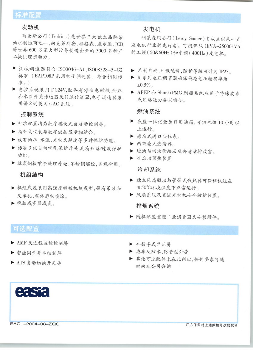 柴油發(fā)動機產(chǎn)品陣容包括:專供工業(yè)用的400系列、800系列、1100系列和1200系列;及專供發(fā)電用的400系列、1100系列、1300系列、1600系列、2000系列和4000系列(并備有多個天然氣型號)