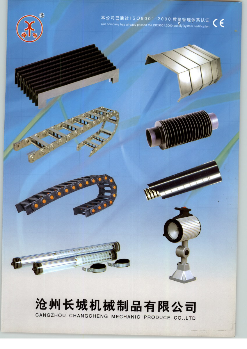 滄州長(zhǎng)城機(jī)械制品有限公司始建于1980年,屬滄州重點(diǎn)保護(hù)企業(yè),位于滄州市與天津交界處,104國(guó)道,京滬高速公路,京滬鐵路東10千米處,交通便利地理位置優(yōu)越 。 滄州長(zhǎng)城機(jī)械制品有限公司已經(jīng)通過(guò)了ISO9001:2000質(zhì)量體系認(rèn)證和CE認(rèn)證。我公司主導(dǎo)產(chǎn)品有:工作燈、機(jī)床工作燈、防護(hù)罩、拖鏈、操作件、墊鐵、波紋軟管、機(jī)床冷卻管、機(jī)床附件、機(jī)床鈑金、電子機(jī)箱、鋁制品壓鑄等系列產(chǎn)品,均采用國(guó)家及行業(yè)標(biāo)準(zhǔn),質(zhì)量可靠,本公司被連年授予《重合同守信用單位》和《消費(fèi)者信得過(guò)單位》等稱號(hào)。滄州長(zhǎng)城機(jī)械制品有限公司現(xiàn)有職工500人,其中工程人員80人,生產(chǎn)設(shè)備250臺(tái)套,設(shè)備先進(jìn)技術(shù)力 量雄厚,檢測(cè)手段完善,總占地面積30000平方米,固定資產(chǎn)2000多萬(wàn)元,年產(chǎn)值5000多萬(wàn)元。本公司依據(jù)GB/T19001-2000idt ISO9001:2000標(biāo)準(zhǔn)建立了質(zhì)量管理體系,并有效實(shí)施,使得產(chǎn)品不斷提高。 滄州長(zhǎng)城機(jī)械制品有限公司全體員工愿以“優(yōu)質(zhì)的產(chǎn)品,一流的服務(wù)”歡迎社會(huì)各界朋友光臨惠顧!聯(lián)系電話:0317-4181101、4182116。