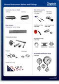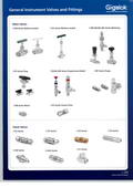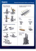 通用儀表閥門和接頭,產(chǎn)品接口尺寸范圍:1/16"至2",最大工作壓力為10,000psi,使用溫度為-54℃至649℃,主體材料可選各種不銹鋼、合金、尼龍及PTFE等。