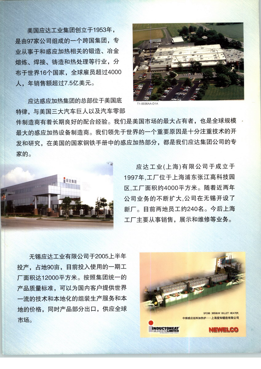 應達工業(yè)(上海)有限公司為美國應達集團在華獨資子公司,注冊地上海市浦東新區(qū)張江高科技園區(qū)郭守敬路50號,成立于1997年10月,注冊資金310萬美元,總投資額為500萬美元,建筑面積3717.46 M2,占地面積 6600M2。 經(jīng)營范圍為: 設計、生產(chǎn)、維修各種電子感應阻性燃料熱加工和精煉機械及其輔助零件和裝置、管材加工設備、塑料熱加工機械及其輔助零件和裝置,銷售自產(chǎn)產(chǎn)品。