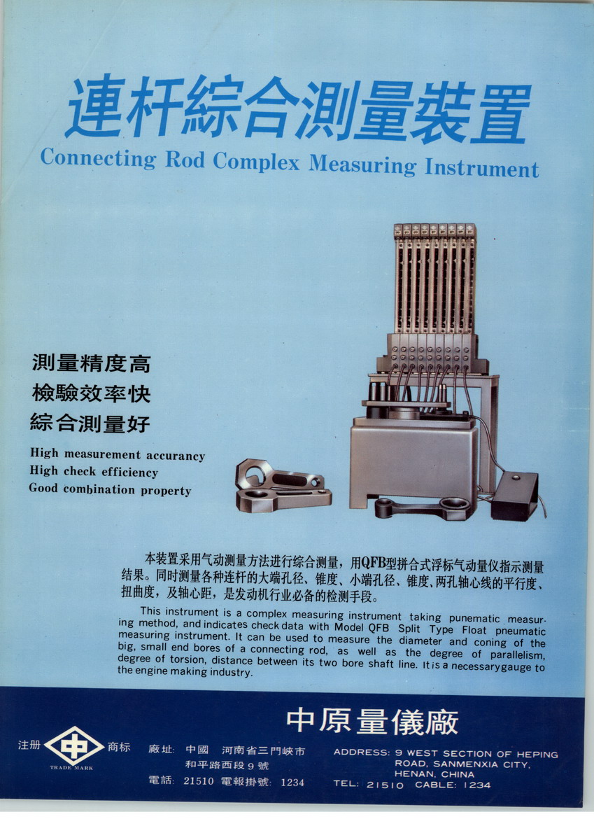 中原量?jī)x股份有限公司創(chuàng)建于1965年,前身為中原量?jī)x廠,是國(guó)家于1965年在引進(jìn)日本東京精密氣動(dòng)、電動(dòng)量?jī)x成套技術(shù)基礎(chǔ)上建成的國(guó)內(nèi)唯一的專(zhuān)業(yè)量?jī)x制造廠,是國(guó)內(nèi)唯一集研究開(kāi)發(fā)、生產(chǎn)制造、市場(chǎng)營(yíng)銷(xiāo)為一體的科技型企業(yè)。