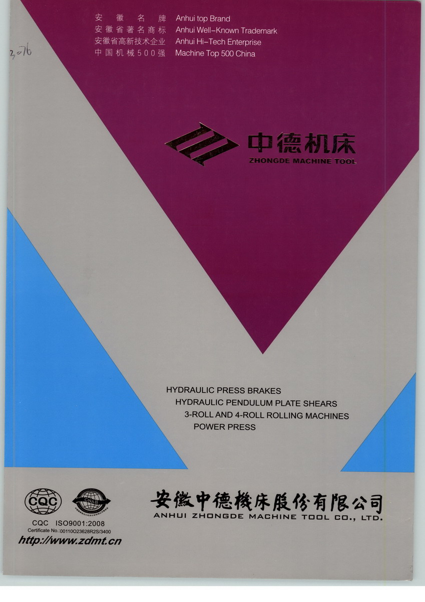 安徽中德機(jī)床股份有限公司于2002年12月26日經(jīng)安徽省人民政府批準(zhǔn)設(shè)立(批準(zhǔn)文號:皖政股[2002]第44號),公司注冊資本人民幣2200萬元。公司前身為馬鞍山市中德機(jī)床廠,系生產(chǎn)各類普通及數(shù)控折彎機(jī)、剪板機(jī)、壓力機(jī)、三、四輥卷板機(jī)、聯(lián)合沖剪機(jī)、切角機(jī)、刃模具配件的現(xiàn)代化管理企業(yè)。