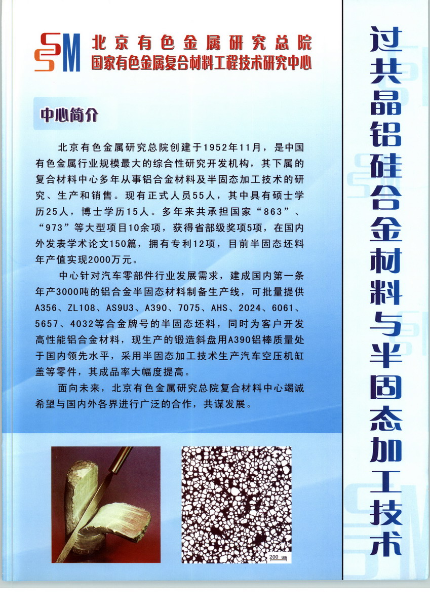 1992年4月開始籌建的國家級工程中心,1996年通過驗收。中心主要從事顆粒增強復合材料、有色金屬半固態(tài)加工技術(shù)、噴射成形技術(shù)、激光快速成形技術(shù)、先進霧化技術(shù)等研究開發(fā)工作。