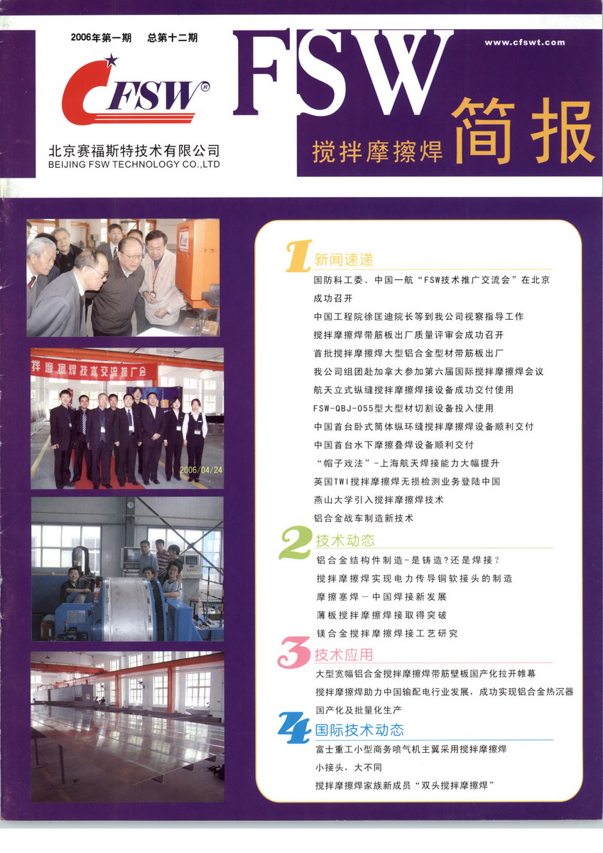 北京賽福斯特技術(shù)有限公司(中國攪拌摩擦焊中心)成立于2002年9月,是中國航空工業(yè)集團公司北京航空制造工程研究院(625所)的全資子公司。北京賽福斯特技術(shù)有限公司(中國攪拌摩擦焊中心)是國家權(quán)威機構(gòu)授權(quán)的“國防科技工業(yè)特種焊接技術(shù)研究應(yīng)用中心”成員單位,是中航工業(yè)“航空連接技術(shù)航空科技重點實驗室”成員單位。北京賽福斯特技術(shù)有限公司(中國攪拌摩擦焊中心)是英國焊接研究所(TWI)核心技術(shù)合作單位。北京賽福斯特技術(shù)有限公司(中國攪拌摩擦焊中心)自成立以來,始終致力于攪拌摩擦焊技術(shù)在中國的研發(fā)和工程化應(yīng)用,并成立了國內(nèi)最具實力、規(guī)模最大的攪拌摩擦焊技術(shù)研發(fā)中心、設(shè)備制造中心和產(chǎn)品制造中心,成功為航空航天、軌道交通、船舶制造、電力電子等工業(yè)領(lǐng)域用戶提供完美的攪拌摩擦焊技術(shù)解決方案。開辟了該技術(shù)在中國工業(yè)領(lǐng)域的輝煌之路。賽福斯特公司主要業(yè)務(wù)包括:攪拌摩擦焊專利技術(shù)發(fā)授與管理、攪拌摩擦焊設(shè)備開發(fā)、攪拌摩擦焊產(chǎn)品加工、攪拌摩擦焊工具(攪拌頭)的研發(fā)和銷售、攪拌摩擦焊技術(shù)培訓(xùn)與技術(shù)服務(wù)、攪拌摩擦焊檢測服務(wù)及檢測產(chǎn)品代理,為攪拌摩擦焊技術(shù)在中國的發(fā)展、推廣和應(yīng)用開啟了大門。2013年,賽福斯特公司率先成立了機器人攪拌摩擦焊工程中心,實現(xiàn)了空間任意曲線軌跡的高精度攪拌摩擦焊,提高了焊接柔性和自動化程度,擴展了攪拌摩擦焊技術(shù)的應(yīng)用領(lǐng)域,開啟了攪拌摩擦焊技術(shù)的自動化新時代。賽福斯特公司先后完成了多項攪拌摩擦焊前沿技術(shù)及國家重大課題的研究:突破并掌握了鋁、鎂、銅、鈦等金屬材料攪拌摩擦焊核心技術(shù),率先在國內(nèi)制訂了《航空鋁合金構(gòu)件攪拌摩擦焊工藝》、《攪拌摩擦焊設(shè)備》航空標(biāo)準(zhǔn)。賽福斯特公司實現(xiàn)了攪拌摩擦點焊、雙軸肩攪拌摩擦焊、靜軸肩攪拌摩擦焊等新技術(shù)開發(fā),并以先進的科研實力承擔(dān)了國防基礎(chǔ)科研課題、總裝預(yù)言課題、科技部等課題。賽福斯特公司獲得國家專利14項,發(fā)表攪拌摩擦焊論文達120余篇,成功舉辦2屆中國攪拌摩擦焊技術(shù)國際會議。憑借深厚的技術(shù)積累,賽福斯特公司不僅確立了中國攪拌摩擦焊技術(shù)領(lǐng)先地位,還與英國TWI、英國PTG公司、法國TRAC、德國KUKA等多家國際機構(gòu)合作,整合技術(shù)資源、開展技術(shù)培訓(xùn),使中國攪拌摩擦焊技術(shù)水平與國際接軌。賽福斯特公司先后榮獲中國工業(yè)和信息化部、中國機械工業(yè)聯(lián)合會、中航集團頒發(fā)的各種獎項15余項。作為攪拌摩擦焊設(shè)備研發(fā)與推廣中心,公司已成功開發(fā)出攪拌摩擦焊設(shè)備的系列化和標(biāo)準(zhǔn)化。秉承先進、可靠、高效、宜人化等特點,開發(fā)了以臺式、靜龍門、動龍門、懸臂等9種系列為主的設(shè)備標(biāo)準(zhǔn)。突破了壓力控制、焊縫跟蹤等關(guān)鍵技術(shù),集輕觸式對刀、激光焊縫跟蹤、柔性工藝控制技術(shù)、無匙孔回填式技術(shù)和全數(shù)控空間三維焊接技術(shù)等先進的工業(yè)技術(shù)于一體,確定了先進、智能的設(shè)備開發(fā)目標(biāo)。為航天、航空、列車、兵器等眾多客戶研制了近百臺專業(yè)化的拌摩擦焊設(shè)備,部分設(shè)備還遠銷新加坡、斯洛伐克、德國及法國等國外市場。為中國出口設(shè)備贏得國際榮譽。在工程化開發(fā)和產(chǎn)品加工領(lǐng)域,公司著眼于全局和長遠發(fā)展,建立了規(guī)模化的生產(chǎn)制造基地和長期戰(zhàn)略合作伙伴關(guān)系,為公司戰(zhàn)略發(fā)展奠定堅實基礎(chǔ)。目前賽福斯特公司擁有多臺攪拌摩擦焊設(shè)備,可滿足于不同工業(yè)產(chǎn)品生產(chǎn)制造,可實現(xiàn)各類寬幅鋁合金型材壁板、散熱器和熱沉器、鋁合金筒體結(jié)構(gòu)件、箱體結(jié)構(gòu)件、冶金極板和特種結(jié)構(gòu)件的攪拌摩擦焊制造,在行業(yè)應(yīng)用領(lǐng)域,賽福斯特公司掌握了飛機地板及壁板、列車車體部件等產(chǎn)品攪拌摩擦焊接技術(shù),為推動我國工業(yè)發(fā)展做出了貢獻。