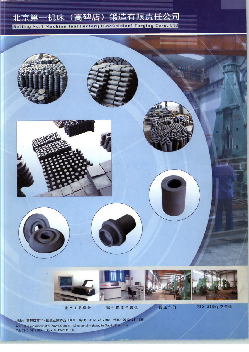 我公司是由國(guó)家重點(diǎn)企業(yè)一一北京第一機(jī)床廠與河北省高碑店市合資興建的一家股份制企業(yè)。公司總投資3 O O O余萬(wàn)元,占地面積4 O余畝。秉承北京第一機(jī)床廠5 O多年的專業(yè)鍛造歷史,鍛造技術(shù)精湛,設(shè)備齊全,是華北地區(qū)規(guī)模較大的專業(yè)鍛造企業(yè),是中國(guó)鍛壓協(xié)會(huì)會(huì)員單位。我公司主要生產(chǎn)設(shè)備有:3噸模鍛錘和3噸自由鍛錘、1噸自由鍛錘、7 5 O公斤、5 6 O公斤和2 5 O公斤自由鍛錘等,壓力機(jī)3臺(tái),機(jī)加工專用設(shè)備和半自動(dòng)設(shè)備2 O余臺(tái),能生產(chǎn)多種優(yōu)質(zhì)鍛件c如:各種齒輪、軸、套、法蘭、支承座、鍵、板等幾千個(gè)品種規(guī)格,廣泛應(yīng)用于機(jī)床、冶金、電力、礦山、地質(zhì)工程、石油、航空、汽車、鐵路等機(jī)械加工制造業(yè),并且可根據(jù)用戶需求對(duì)鍛件產(chǎn)品進(jìn)行深加工。根據(jù)目前設(shè)備生產(chǎn)能力,我公司可滿足社會(huì)各界朋友對(duì)鍛件產(chǎn)品的需求。滿足社會(huì)各界朋友對(duì)鍛件產(chǎn)品的需求。公司現(xiàn)有員工.1 O 0余名,其中高級(jí)工程師3名,工程師、經(jīng)濟(jì)師6名,具有2 O多年鍛造經(jīng)驗(yàn)的專業(yè)技術(shù)人員2 O多名,經(jīng)專業(yè)培訓(xùn)上崗人員5 O多名,碩士研究生、大學(xué)本科畢業(yè)生6名,大中專畢業(yè)生1 5名。我公司已通過(guò)I S O 9 O 0 1國(guó)際質(zhì)量體系認(rèn)證,并且將始終堅(jiān)持“質(zhì)量第一,客戶至上,制造精良"的經(jīng)營(yíng)理念,隨時(shí)滿足客戶的需求。公司位于河北省高碑店市1 1 2國(guó)道亞威橋西側(cè)路北,交通便利,環(huán)境優(yōu)雅,屬花園式工廠。