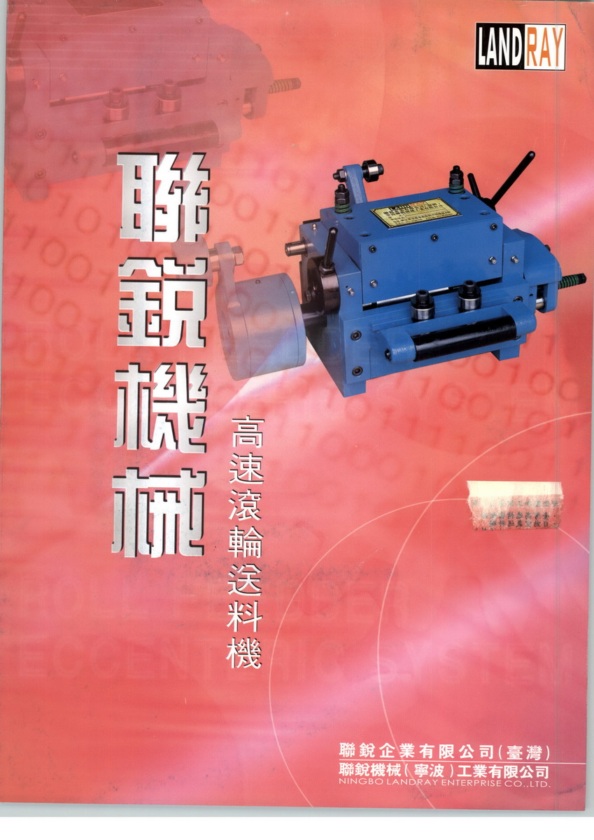 聯(lián)銳機械(寧波)工業(yè)有限公司系臺商獨資企業(yè),除傳承臺灣二十余年經(jīng)驗外,更秉持“高品質(zhì)、高服務(wù)、高信譽”之理念和“創(chuàng)新、突破”之精神。工作人員均經(jīng)過專業(yè)培訓(xùn),是中國大陸目前最專業(yè)的沖壓設(shè)備及周邊自動化設(shè)備的制造廠之一。公司自投產(chǎn)以來,一直本著優(yōu)良的品質(zhì)、合理的價格、熱情的服務(wù)贏得業(yè)界之信賴這是本公司發(fā)展、經(jīng)營的宗旨,唯盼能為客戶提供最佳之服務(wù)。
