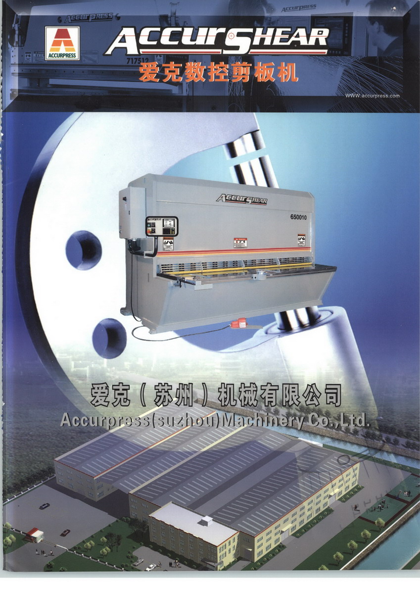 Accurpress 愛克(蘇州)機(jī)械有限公司是一家具有三十多年歷史的專業(yè)生產(chǎn)高質(zhì)量折彎?rùn)C(jī)、剪板機(jī)的北美著名企業(yè)。總部位于美國(guó),在美國(guó)和加拿大共擁有五家工廠和一家研發(fā)中心。愛克已在北美銷售了數(shù)萬臺(tái)機(jī)器,占據(jù)了40%以上的市場(chǎng),連續(xù)十多年成為北美的銷量冠軍。2003年,愛克公司在蘇州太倉獨(dú)資成立了中國(guó)工廠,由此,開始在中國(guó)大批量生產(chǎn)高質(zhì)量的數(shù)控折彎?rùn)C(jī)和剪板機(jī)。經(jīng)過幾年的不斷發(fā)展,愛克公司在中國(guó)取得了極大的成功,產(chǎn)品遍布各地、各行業(yè)。超過1500家用戶,3000臺(tái)愛克機(jī)器的安裝和使用就是廣大中國(guó)用戶對(duì)愛克的信任和支持。我們將秉承真誠合作、共同成長(zhǎng);科技創(chuàng)新、服務(wù)大眾的企業(yè)理念,繼續(xù)為廣大用戶提供行業(yè)中最優(yōu)產(chǎn)品和最佳服務(wù)。