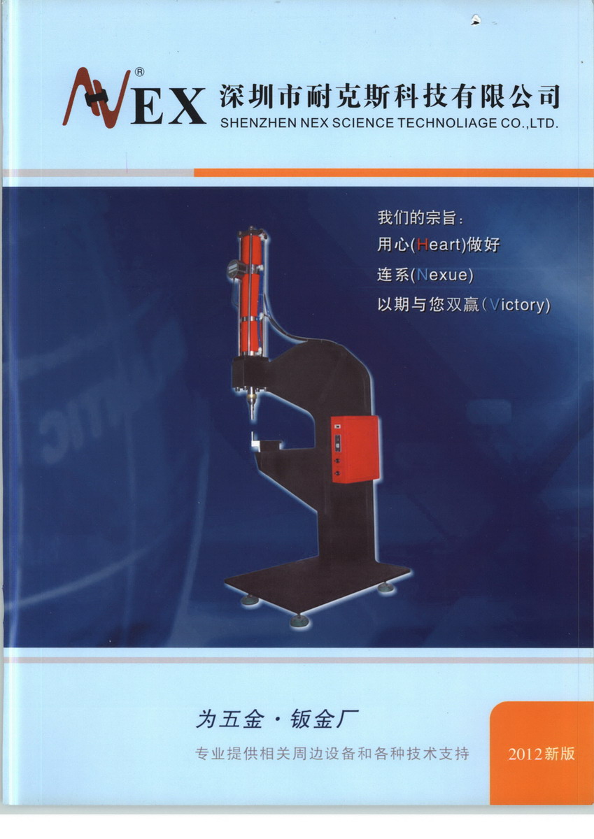 深圳市耐克斯科技有限公司,專業(yè)從事機(jī)電產(chǎn)品研發(fā)和制作、集技術(shù)開(kāi)發(fā)、生產(chǎn)、貿(mào)易于一體的高技術(shù)含量的民營(yíng)企業(yè),是深圳市機(jī)械行業(yè)協(xié)會(huì)會(huì)員企業(yè)。耐克斯以技術(shù)創(chuàng)新為宗旨,以向五金加工企業(yè)提供各種技術(shù)服務(wù)為經(jīng)營(yíng)方向,著重于實(shí)用、高效、節(jié)能、高品質(zhì)的加工設(shè)施的研制,并極力向國(guó)人推廣世界各種先進(jìn)機(jī)械加工技術(shù),目前已開(kāi)發(fā)的產(chǎn)品有螺栓螺母壓裝機(jī)(即壓鉚機(jī))、氣液增力缸、氣動(dòng)高速?zèng)_床、數(shù)控折彎?rùn)C(jī)、精密壓裝機(jī)等多系列產(chǎn)品。