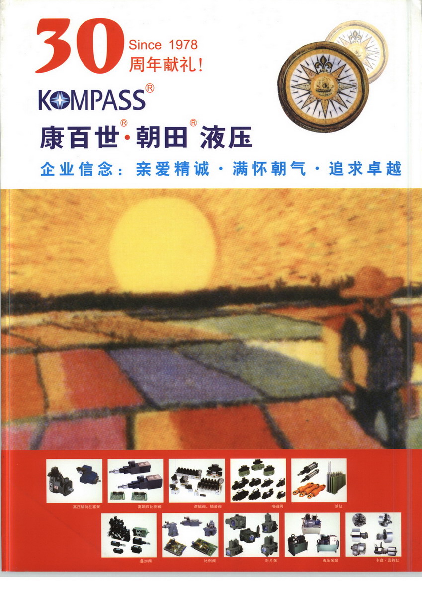 我公司是臺灣朝田企業(yè)股份有限公司駐大陸分公司,臺灣朝田最著名的液壓元件制造公司之一,生產(chǎn)KOMPASS液壓元件,以其品質(zhì)精良、合理的價格、準(zhǔn)確的交貨和良好的售后服務(wù)而深受用戶歡迎。產(chǎn)品除暢銷臺灣外,還遠(yuǎn)銷到日本、美國、歐盟及東南亞等國家。為了讓全體國人也早日認(rèn)識這一國際品質(zhì)的液壓元件,我們在1994年設(shè)立了朝田企業(yè)集團(tuán)廣州公司,全面負(fù)責(zé)KOMPASS液壓元件在大陸的銷售和總代理工作。承蒙業(yè)界同仁的厚愛和支持,業(yè)績飛速發(fā)展。為進(jìn)一步滿足客戶需要,已分別在北京、廣州、上海、寧波和東莞設(shè)有辦事處。朝田公司董事長邱水來先生以提升臺灣液壓工業(yè)的技術(shù)品級為宗旨,并引進(jìn)日本、美國和德國等工業(yè)發(fā)達(dá)國家的先進(jìn)設(shè)備和技術(shù),不繼提高KOMPASS液壓產(chǎn)品性能和質(zhì)量,倍受業(yè)界朋友推崇。而且經(jīng)他多年努力所整合全臺灣液壓同業(yè)已取得共識,終于在1990年創(chuàng)立了臺灣區(qū)空油壓機器同業(yè)公會,并榮膺創(chuàng)會理事長。為加強兩岸液壓業(yè)界交流,邱理事長水來先生自1988年起多次率團(tuán)訪問上海和北京的液壓界同行,共同研討如何結(jié)合兩岸優(yōu)勢振興液壓工業(yè).朝田公司成立于1978年,現(xiàn)已發(fā)展成集液壓元件、立體停車設(shè)備、國際貿(mào)易、建筑、康化生活用品等事業(yè)的大型集團(tuán)公司。1983年成立的朝陽油壓機械股份有限公司是其屬下專業(yè)制造KOMPASS液壓元件及液壓系統(tǒng)的工廠,擁有精良的先進(jìn)加工設(shè)備和嚴(yán)格的質(zhì)保體系,年產(chǎn)值超過一億元人民幣,產(chǎn)品被廣泛應(yīng)用在機床、塑膠機械、立體停車設(shè)備、制鞋機器、木工機械、鋼鐵工廠自動化生產(chǎn)線和設(shè)備上。1990年,朝田公司曾為BOSCH臺灣區(qū)液壓元件總代理,緊密的合作關(guān)系使朝田學(xué)到了許多BOSCH的先進(jìn)技術(shù),也極大地提升了朝田自我產(chǎn)品KOMPASS液壓元件的品質(zhì)。朝田KOMPASS液壓元件產(chǎn)品種類:1、泵類:定量葉片泵、變量葉片泵、齒輪泵、柱塞泵;2、壓力閥類;溢流閥、電磁溢流閥、減壓閥、順序閥、背壓閥;3、方向閥類:電磁換向閥、電液換向閥、手動換向閥、單向閥、液控單向閥;4、流量閥類:節(jié)流閥、單向節(jié)流閥、充液閥、電磁換向快慢速閥、插裝閥;5、疊加閥類:單向閥、液控單向閥、溢流閥、減壓閥、順序閥、抗衡閥、節(jié)流閥、電磁換向快慢速閥;6、油缸、油路塊、壓力繼電器、無泄漏方向閥、平面磨床用緩沖閥;7、件類:冷卻器、壓力表、油溫油面計、油濾、連軸器、管路濾油器等;8、液壓泵站及成套系統(tǒng)。