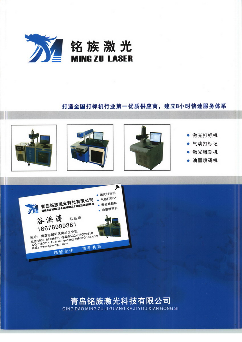 青島銘族激光科技有限公司專業(yè)致力于研發(fā)、生產(chǎn)和銷售激光打標機、激光噴碼機、激光焊接機、激光切割機、激光雕刻機、氣動打標機的高科技企業(yè),國內(nèi)知名的激光打標系統(tǒng)集成商,中國工業(yè)激光設備制造業(yè)的開拓者之一,國內(nèi)激光商城O2O模式電子商務平臺創(chuàng)始人之一。公司擁有5600平方的激光設備生產(chǎn)專業(yè)廠房,10名技術科研高級人才,50名生產(chǎn)售后工程師,足以保產(chǎn)品的高質(zhì)量和售后的快速響應的服務。我公司憑借強大的技術團隊,研發(fā)生產(chǎn)滿足客戶需求的各類激光設備,現(xiàn)已形成了一系列激光加工設備生產(chǎn)線,既可為客戶提供優(yōu)質(zhì)的激光加工設備,更具備為各戶提供一整套激光加工解決方案及其相關配套設施的綜合能力,是您發(fā)展的最佳合作伙伴。銘族激光,世界品牌,數(shù)年來,我們的產(chǎn)品遠銷北美、西歐、南亞、南美、中東等國家和地區(qū),并成功通過了歐盟CE認證,ISO9000認證等,歡迎全球各地的客戶一起體驗世界一流的產(chǎn)品和服務!