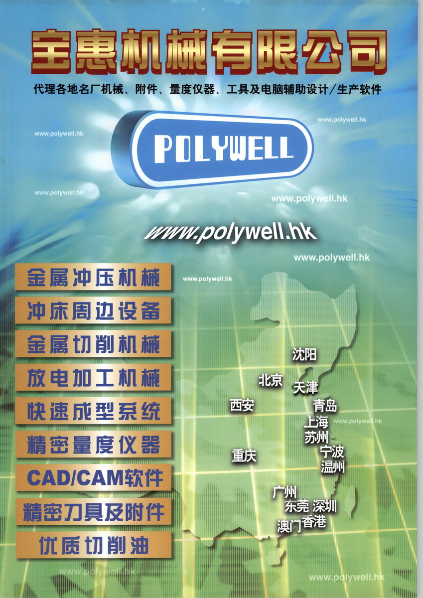 寶惠機(jī)械有限公司成立于一九九零年,主要代理機(jī)械業(yè)務(wù)。 為配合本地工業(yè)對高質(zhì)素高精度機(jī)床產(chǎn)品的要求, 公司從世界各地引進(jìn)各種精良電腦數(shù)控機(jī)械,包括模具設(shè)備 (如加工中心、火花機(jī)、線切割機(jī)、磨床等等)、鈑金設(shè)備 (激光切割機(jī)、液壓轉(zhuǎn)塔沖床、液壓彎板機(jī)等等)、車床設(shè)備 (車削中心 、傳統(tǒng)車床等等) 及特殊機(jī)械設(shè)備 (齒輪加工機(jī)、快速成型系統(tǒng)等等)。 八十年代中國開始實(shí)施經(jīng)濟(jì)開放政策,為節(jié)省生產(chǎn)成本,越來越多的本地廠家北移及擴(kuò)充規(guī)模,基于此種發(fā)展趨勢,公司在東莞設(shè)立維修服務(wù)中心,向客戶提供快捷的維修服務(wù),現(xiàn)時(shí)維修服務(wù)部有員工超過150人(香港及國內(nèi)),各服務(wù)工程師均經(jīng)過嚴(yán)格訓(xùn)練并分為不同組別,以保證專業(yè)服務(wù)的質(zhì)素。 現(xiàn)今科技日新月異,機(jī)械行業(yè)亦向高科技精密產(chǎn)品發(fā)展?!笇毣荨辜磿r(shí)把握機(jī)會, 引入激光切割機(jī)、等離子切割機(jī)、鐳射雕刻機(jī)及快速成形系統(tǒng)等先進(jìn)機(jī)械,令產(chǎn)品更加多元化。為掌握行業(yè)動向及最新生產(chǎn)技術(shù),「寶惠」的資深工程師經(jīng)常參觀國外之機(jī)械展覽會,以適時(shí)引進(jìn)先進(jìn)機(jī)械設(shè)備,保持與世界機(jī)械工業(yè)的同步發(fā)展。 「寶惠」之宗旨是向客戶提供一站式服務(wù),除協(xié)助客戶選購高質(zhì)素及合適之機(jī)械外,更向客戶提供有關(guān)配套設(shè)備 (包括機(jī)床附件、刀具系統(tǒng)、電腦軟件、售前及售后服務(wù)),其中先進(jìn)科技部,專責(zé)為客戶提供電腦輔助設(shè)計(jì)軟件、立體激光掃描系統(tǒng)及三座標(biāo)測量機(jī)等高科技產(chǎn)品以及相關(guān)專業(yè)訓(xùn)練課程。 為滿足中國客戶對精密先進(jìn)機(jī)械不斷增長之需求,「寶惠」分別在北京、上海、重慶、廣州、西安及瀋陽等國內(nèi)重要城市設(shè)立辦事處,藉此向國內(nèi)客戶介紹先進(jìn)機(jī)械及協(xié)助客戶更新改造現(xiàn)有設(shè)備。 為向客戶介紹最新型機(jī)械及先進(jìn)生產(chǎn)技術(shù),公司每年必參加本地及國內(nèi)十多個(gè)機(jī)械展覽,并于陳列室舉行的大型展銷會及研討會,提供客戶與制造商直接交流的機(jī)會,此外,公司按時(shí)舉辦先進(jìn)機(jī)械考察團(tuán)、在各種工業(yè)雜志及報(bào)紙刊登廣告、印制公司資訊,加強(qiáng)客戶對公司產(chǎn)品的了解和信心。 「寶惠」之目標(biāo)是 “立志成為中國及香港機(jī)械行業(yè)最優(yōu)質(zhì)服務(wù)的提供者”。 公司將不斷引入先進(jìn)技術(shù)及精密機(jī)械,提供優(yōu)質(zhì)完善服務(wù),與時(shí)并進(jìn),與客戶共同發(fā)展。